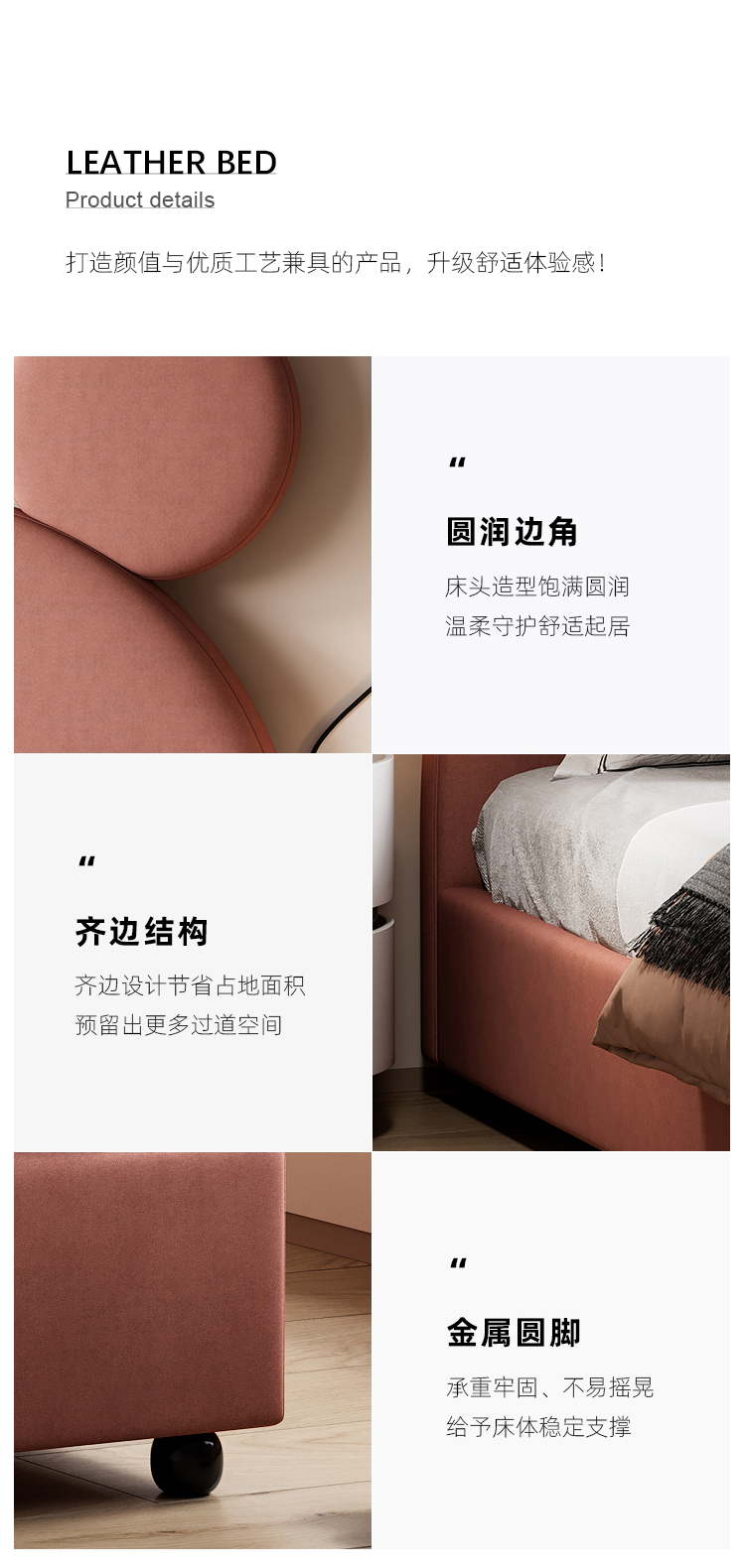 帝幔佧 现代 接触面真皮+静音床板+全实木框架 拉点床 1.8米床¥5408