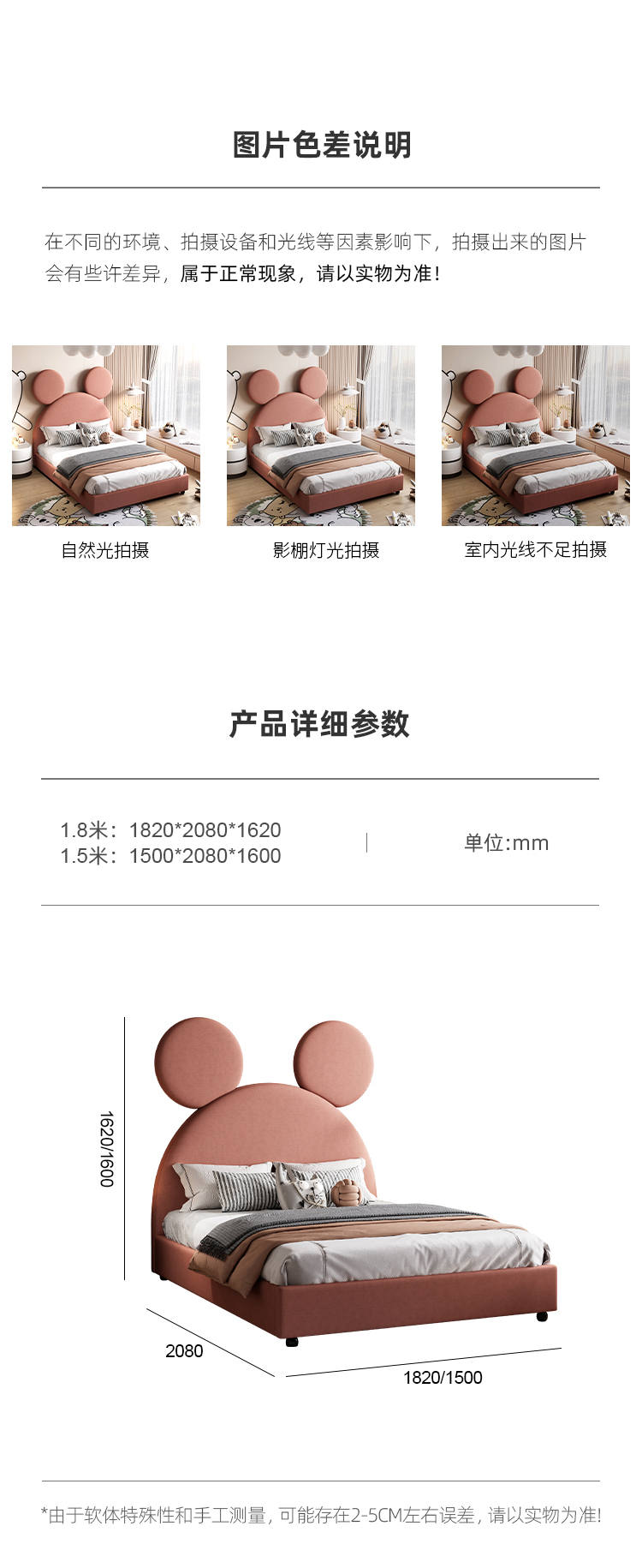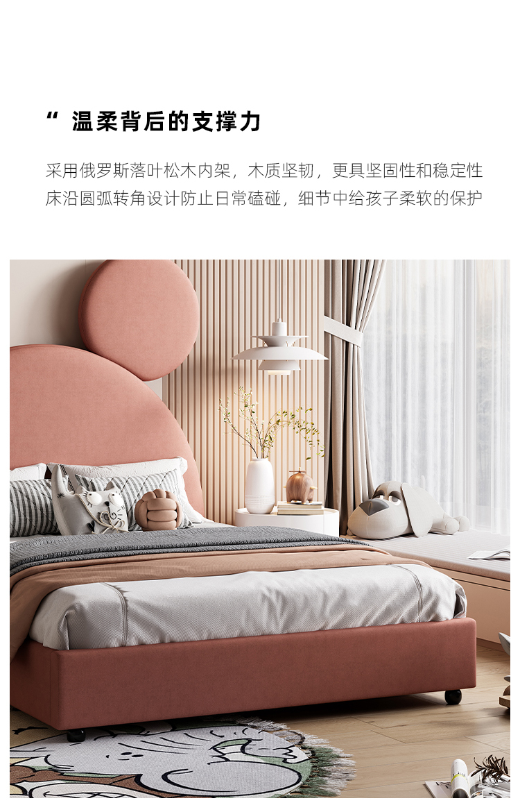 帝幔佧 现代 俄罗斯进口落叶松 优质高回弹海绵靠包 实木排骨架 米奇儿童床 1.5米床 |
