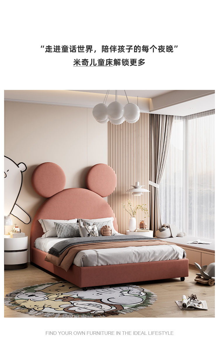 帝幔佧 现代 俄罗斯进口落叶松 优质高回弹海绵靠包 实木排骨架 米奇儿童床 1.5米床