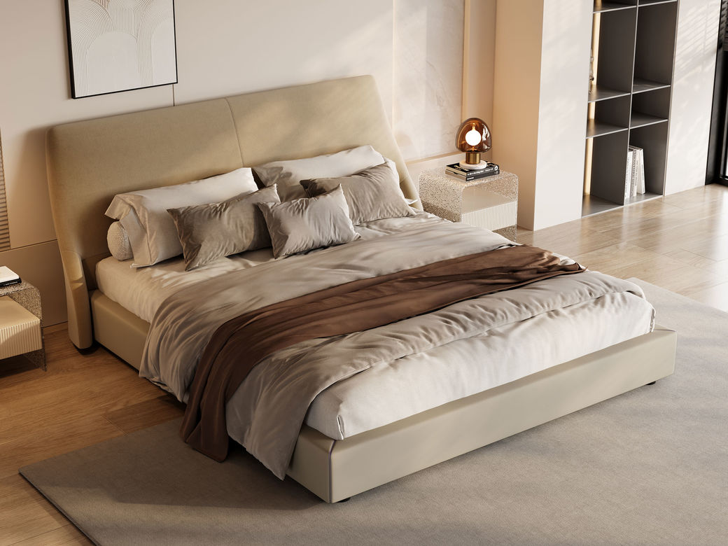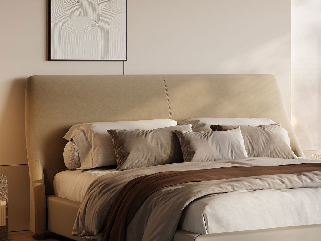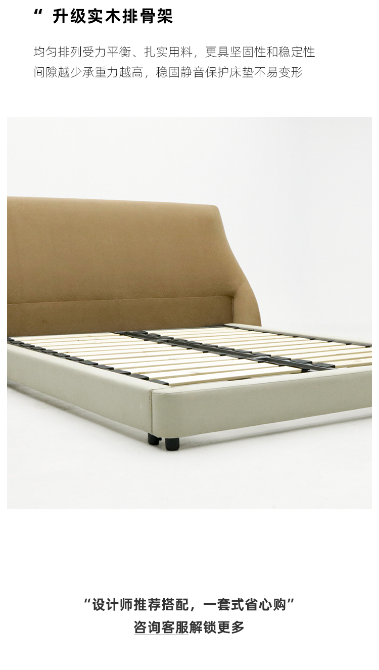 贝斯solo 设计师 网红 极简 布艺 俄罗斯进口落叶松 优质高回弹海绵靠包 钢木排骨架 Minotti柯蒂斯床 1.8米床