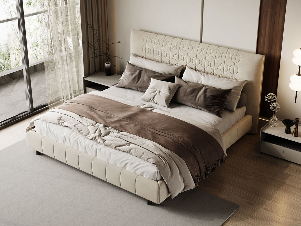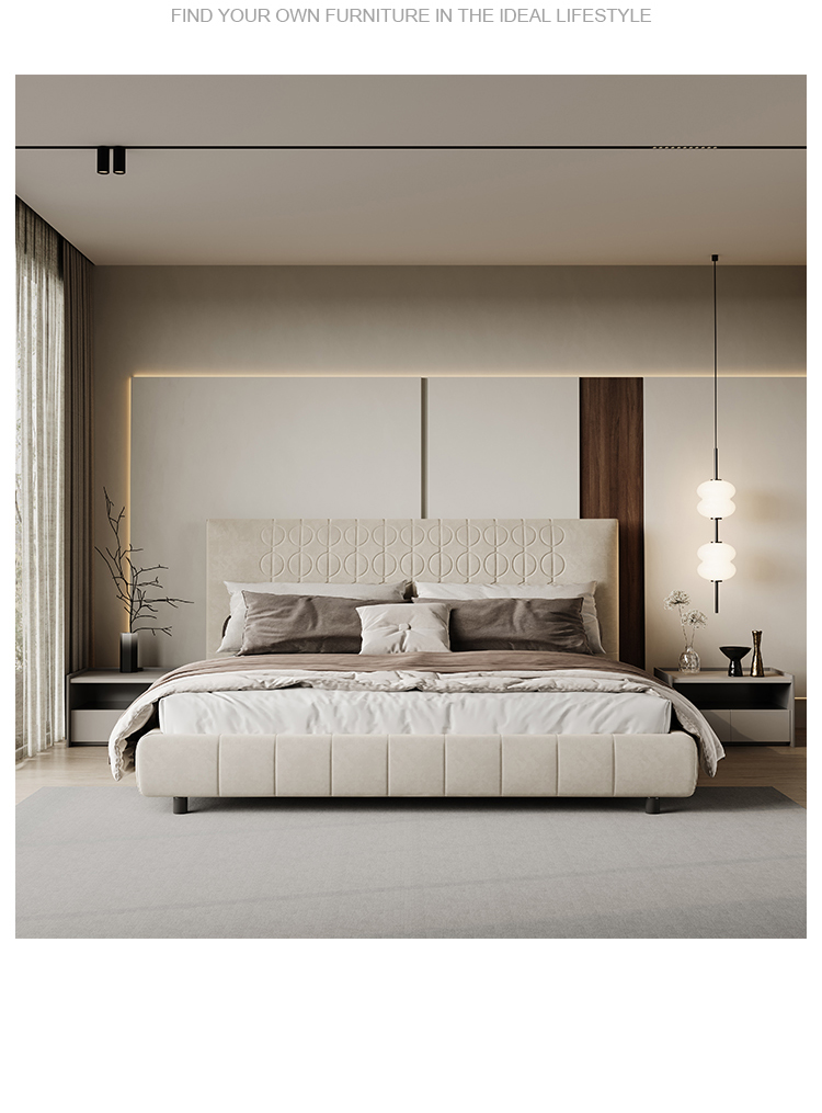 贝斯solo 设计师 网红 极简 布艺 俄罗斯进口落叶松 优质高回弹海绵靠包 钢木排骨架 Minotti柯蒂斯床 1.8米床