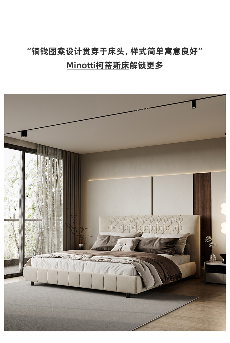 贝斯solo 设计师 网红 极简 布艺 俄罗斯进口落叶松 优质高回弹海绵靠包 钢木排骨架 Minotti柯蒂斯床 1.5米床