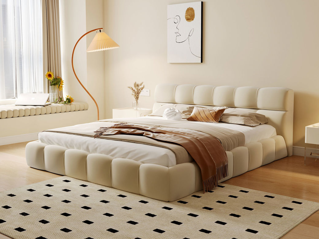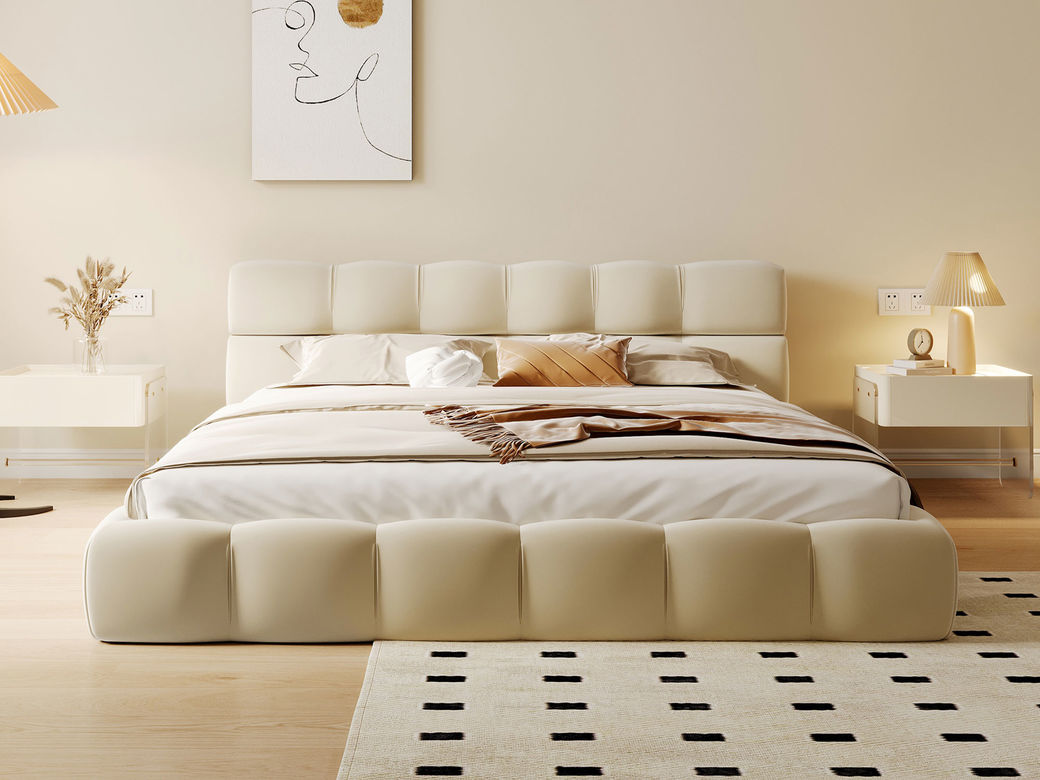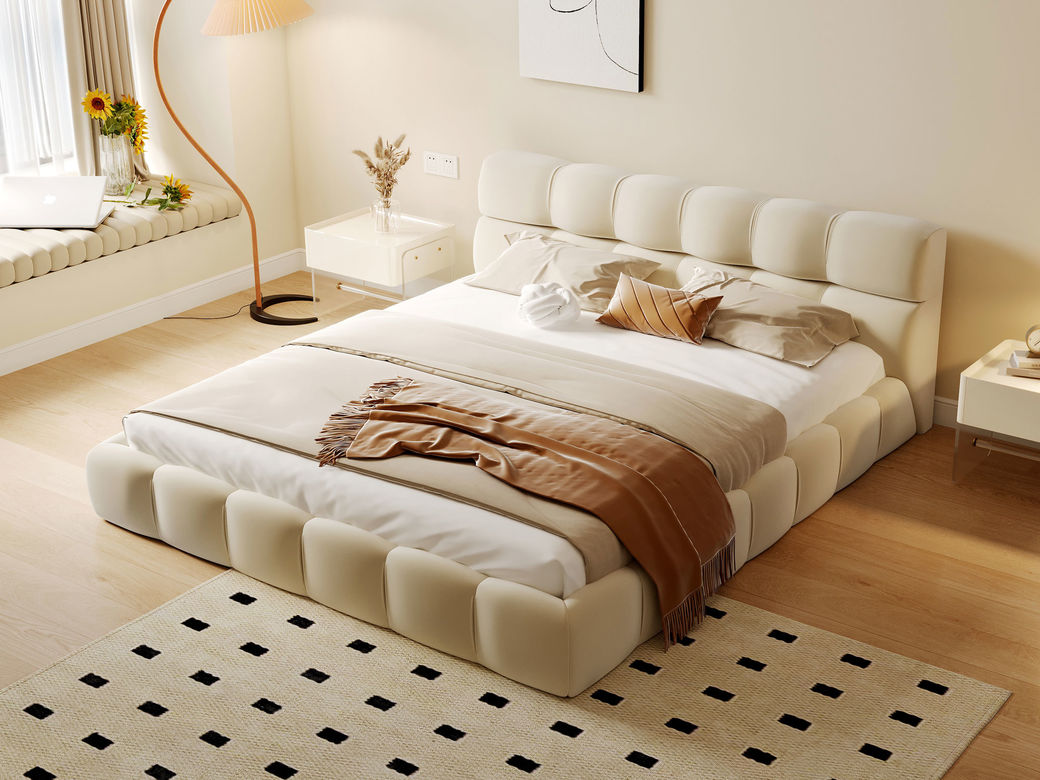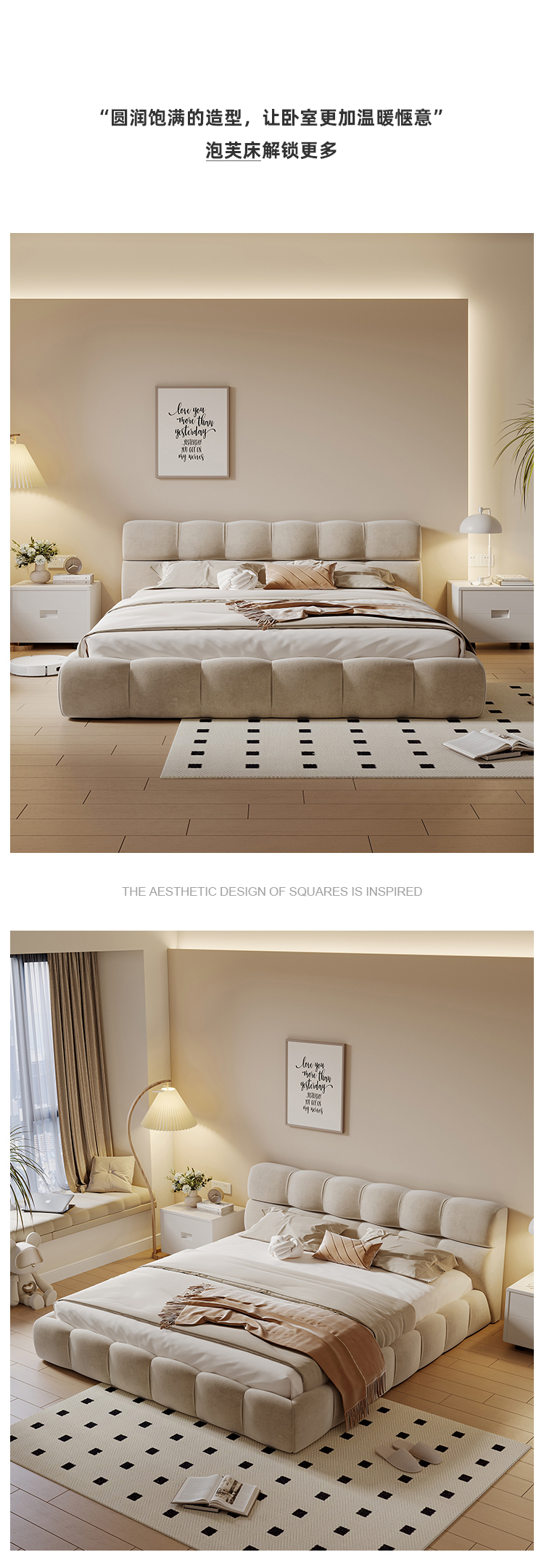 贝斯solo 设计师 网红 极简 布艺 俄罗斯进口落叶松 优质高回弹海绵靠包 钢木排骨架 Tufty泡芙床 1.8米床