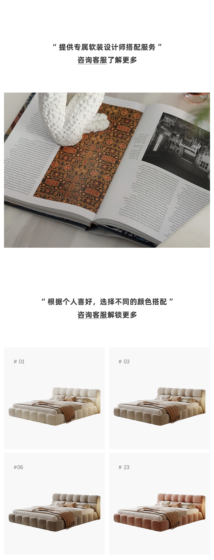 贝斯solo 设计师 网红 极简 布艺 俄罗斯进口落叶松 优质高回弹海绵靠包 钢木排骨架 Kelly床 1.8米床| 商品详情 | 规格参数 | 评价(0) | 购买咨询() | 产品实拍图 | 服务标准 |
