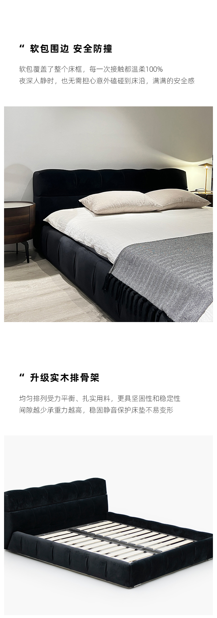 贝斯solo 设计师 网红 极简 布艺 俄罗斯进口落叶松 优质高回弹海绵靠包 钢木排骨架 Minotti柯蒂斯床 1.8米床