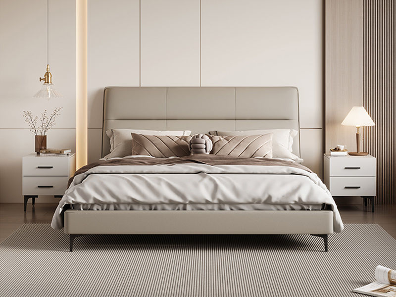 帝幔佧 现代 接触面真皮 进口松木内架 高回弹海绵 静音床板 真皮床 1.8米床