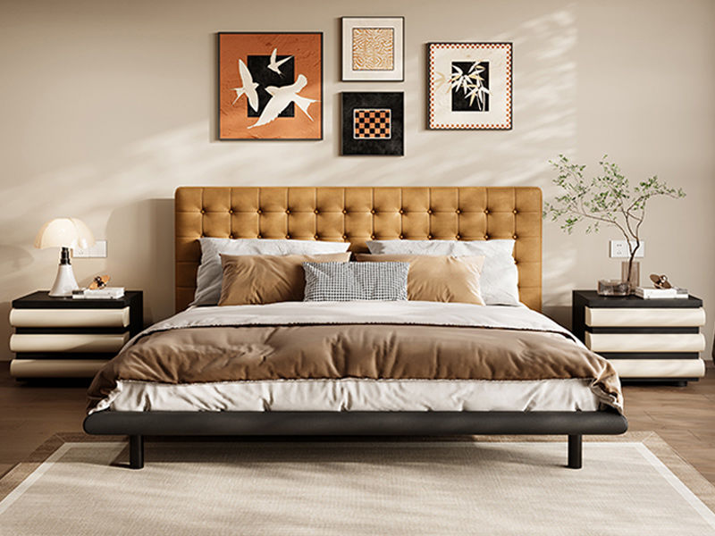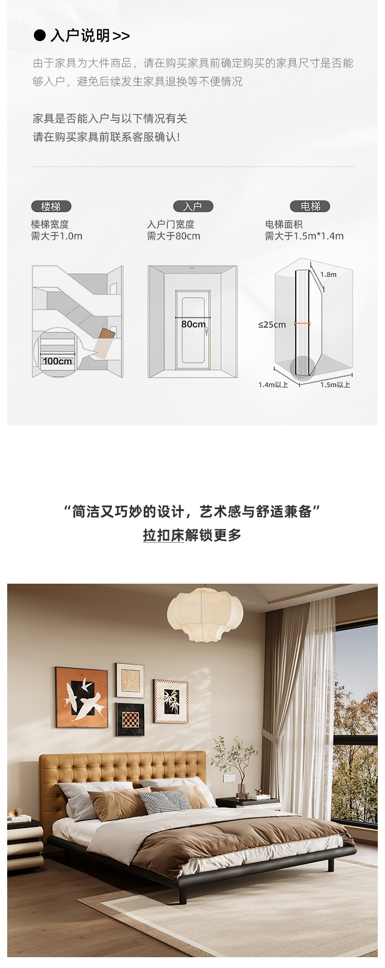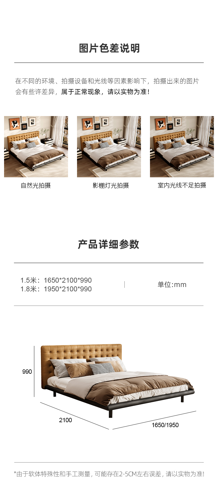 贝斯solo 设计师 网红 极简 接触面全磨砂真皮 进口松木内架 高回弹海绵 静音床板 魔方格悬浮床 1.8米床¥7047