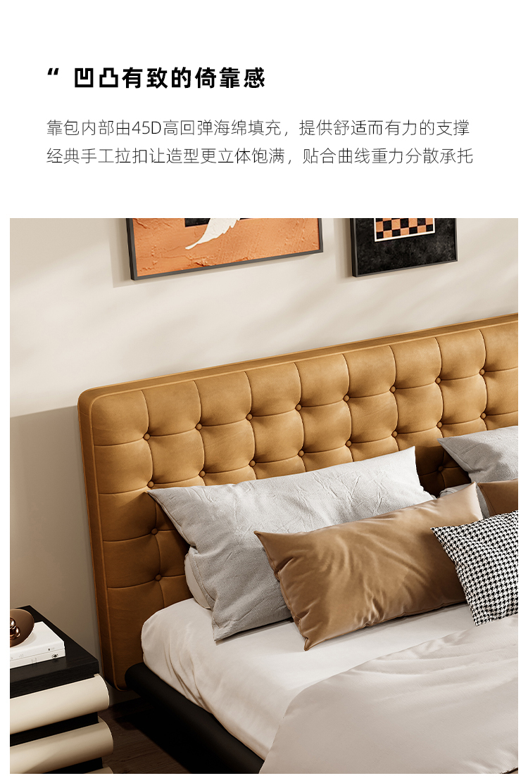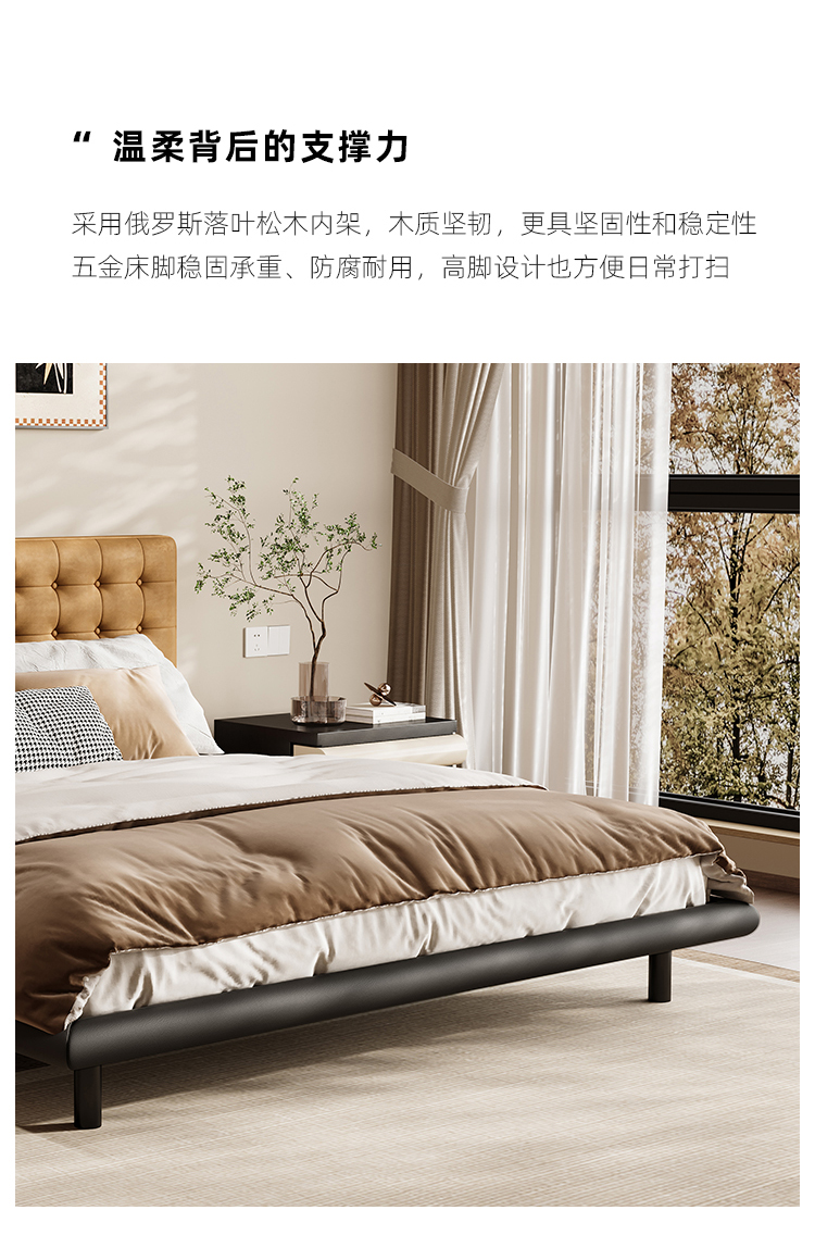 贝斯solo 设计师 网红 极简 接触面真皮 俄罗斯进口落叶松 优质羽绒靠包 静音床板 小象耳朵床 1.8米床¥8139