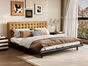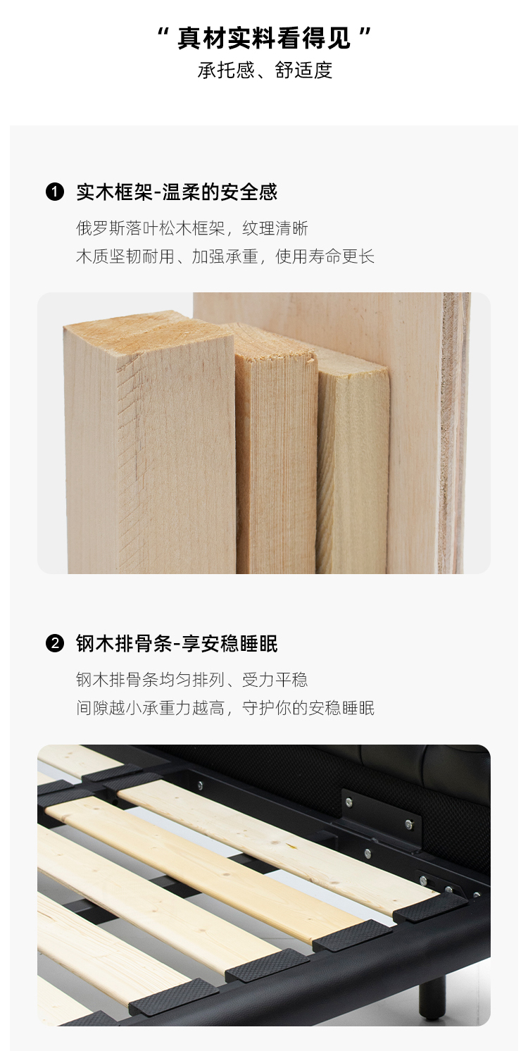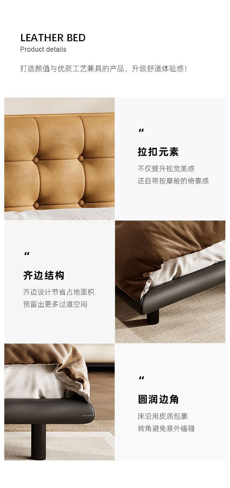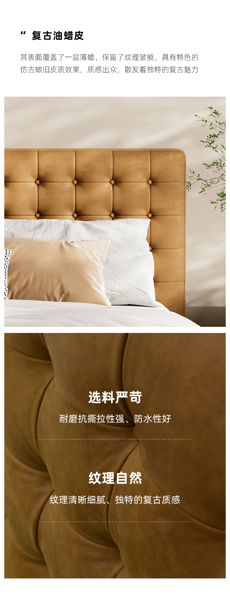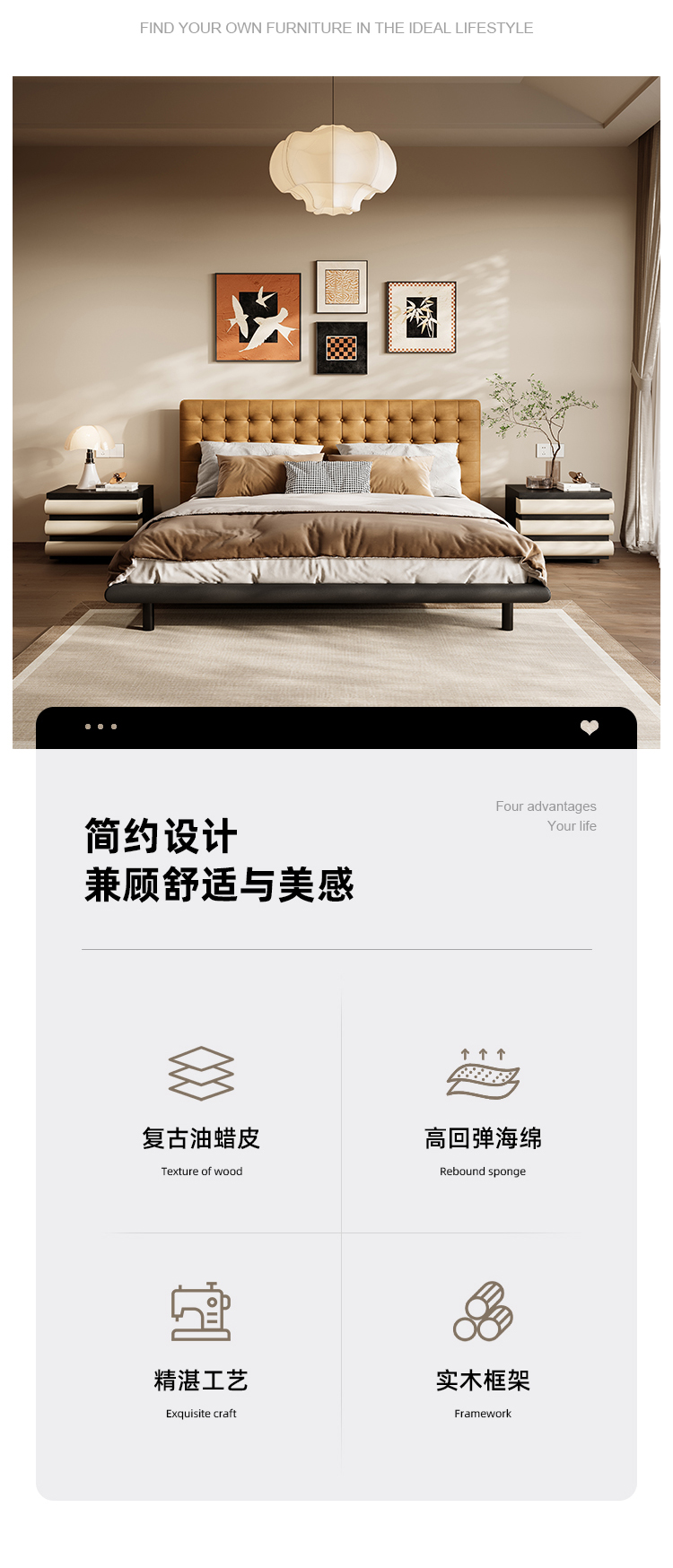贝斯solo 设计师 网红 极简 油蜡皮 俄罗斯进口落叶松 优质高回弹海绵靠包 钢木排骨条 拉扣床 1.8米床