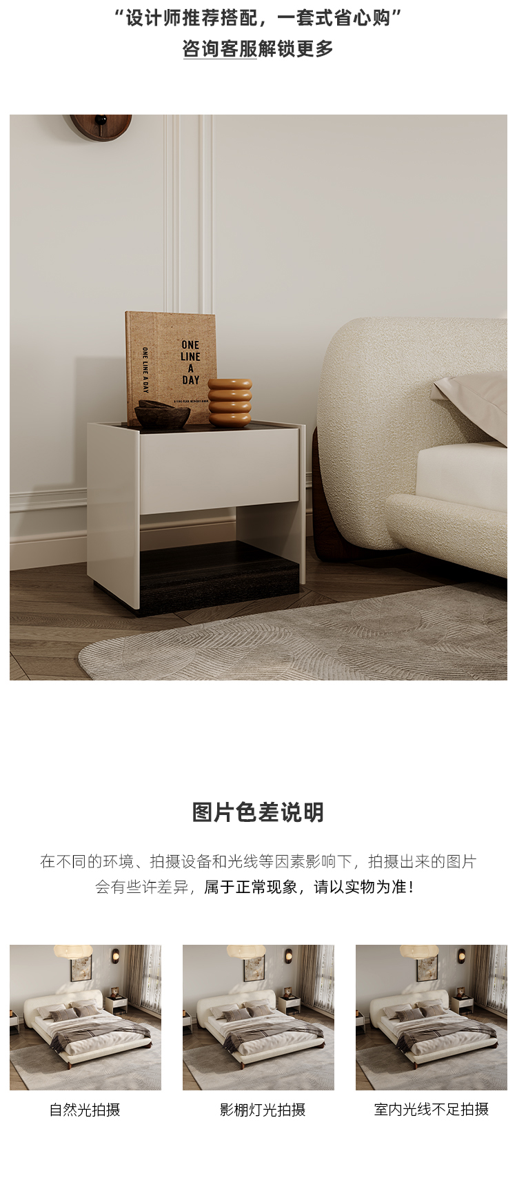 洛萨 极简 接触面真皮 进口松木内架 高回弹海绵 静音床板 意式拉点床 1.8米床