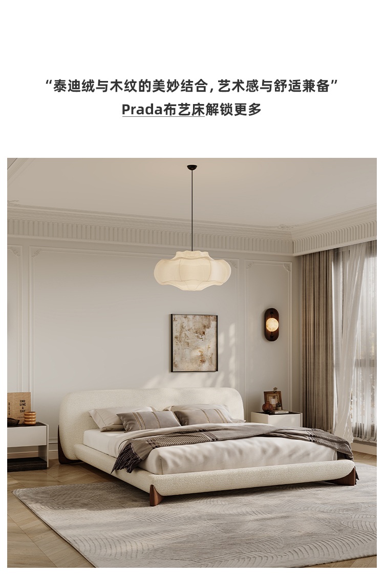 洛萨 极简 布艺 俄罗斯进口落叶松 优质高回弹海绵靠包 钢木排骨架 Prada 1.8米床
