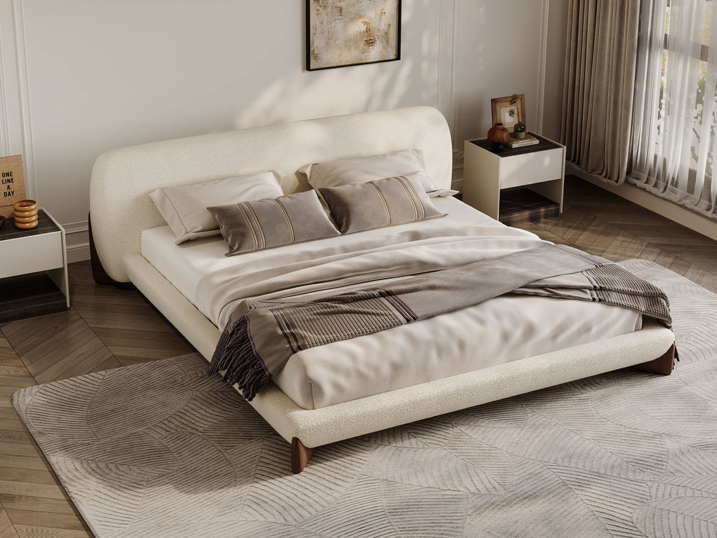 洛萨 极简 布艺 俄罗斯进口落叶松 优质高回弹海绵靠包 钢木排骨架 榻榻米面包床 1.8米床