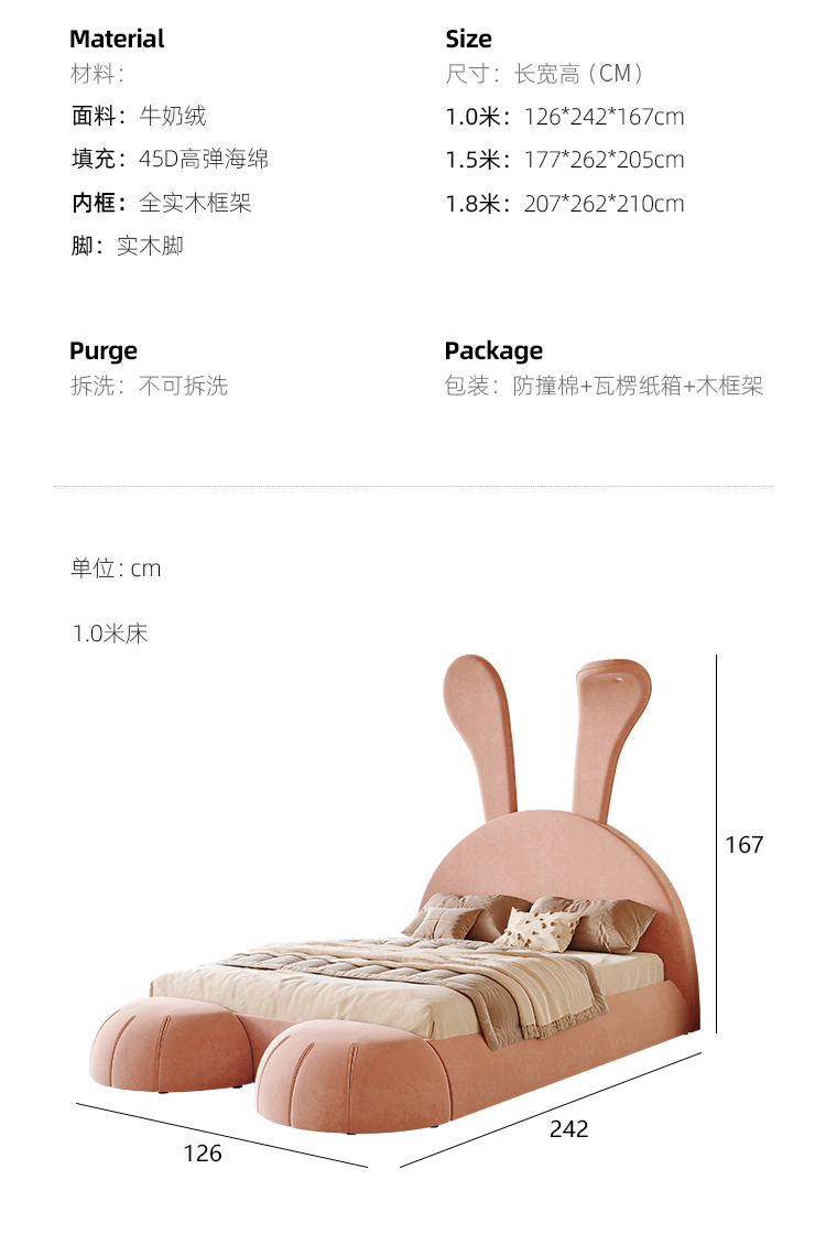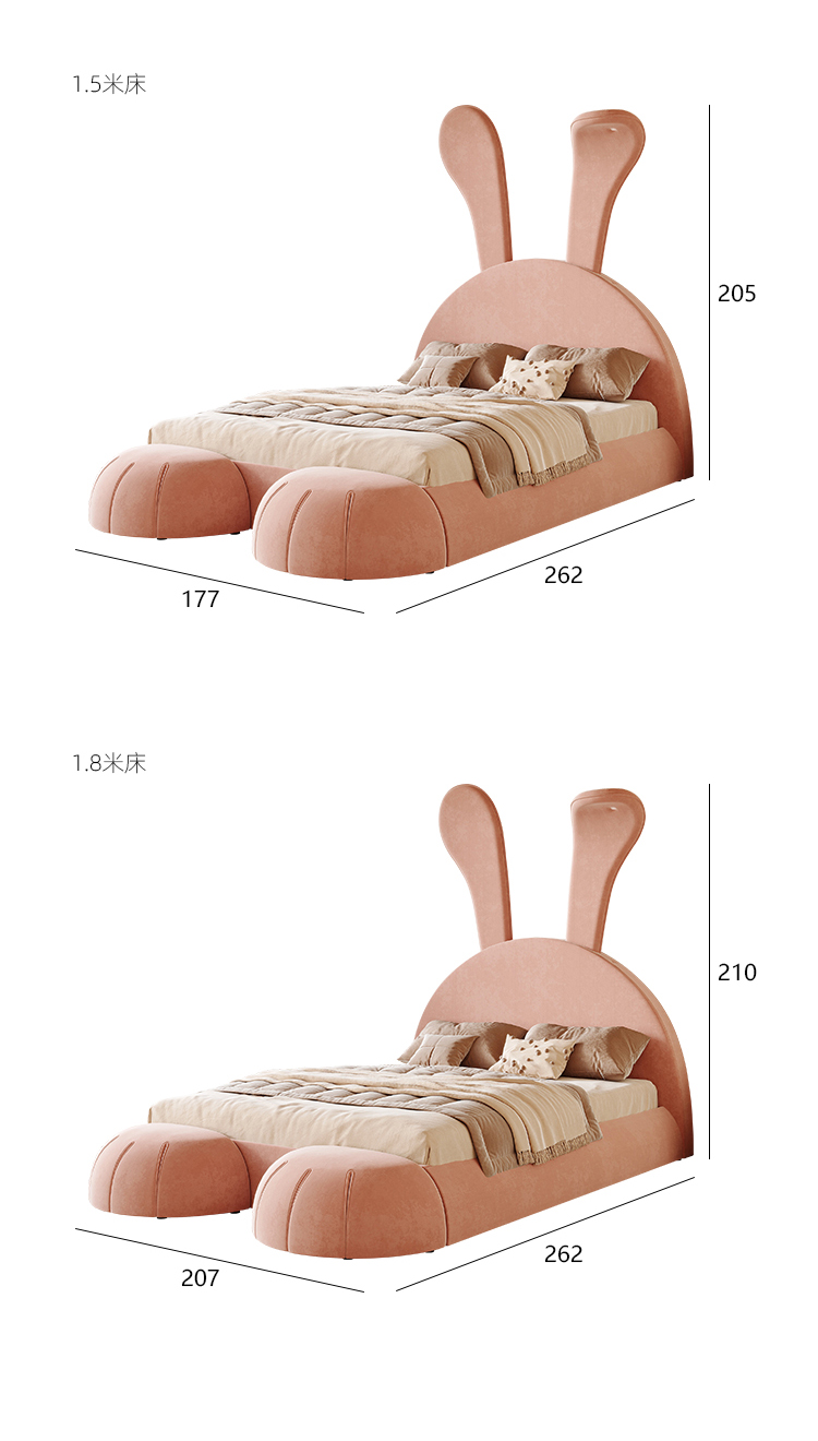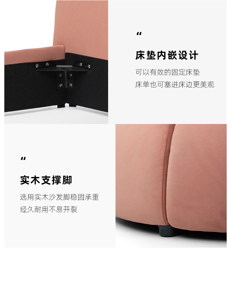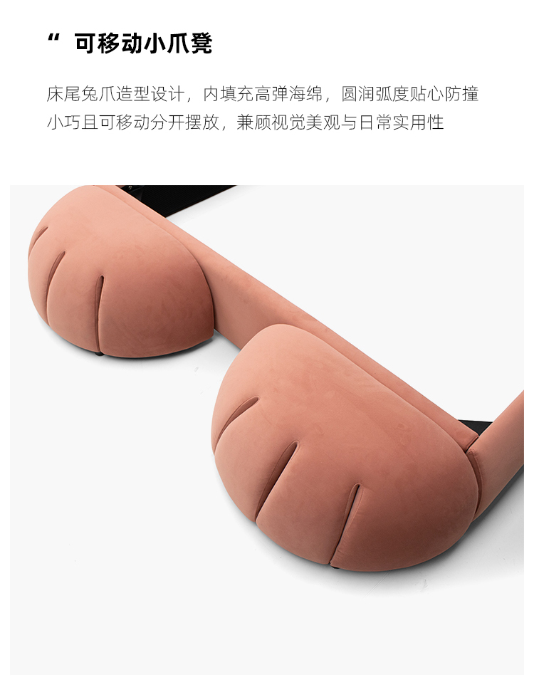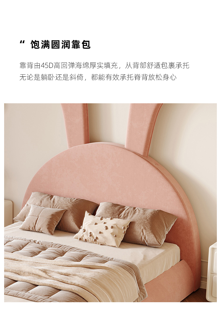 贝斯solo 设计师 网红 极简 布艺 进口松木内架 高回弹海绵 钢木排骨架 兔子床 1.5米床