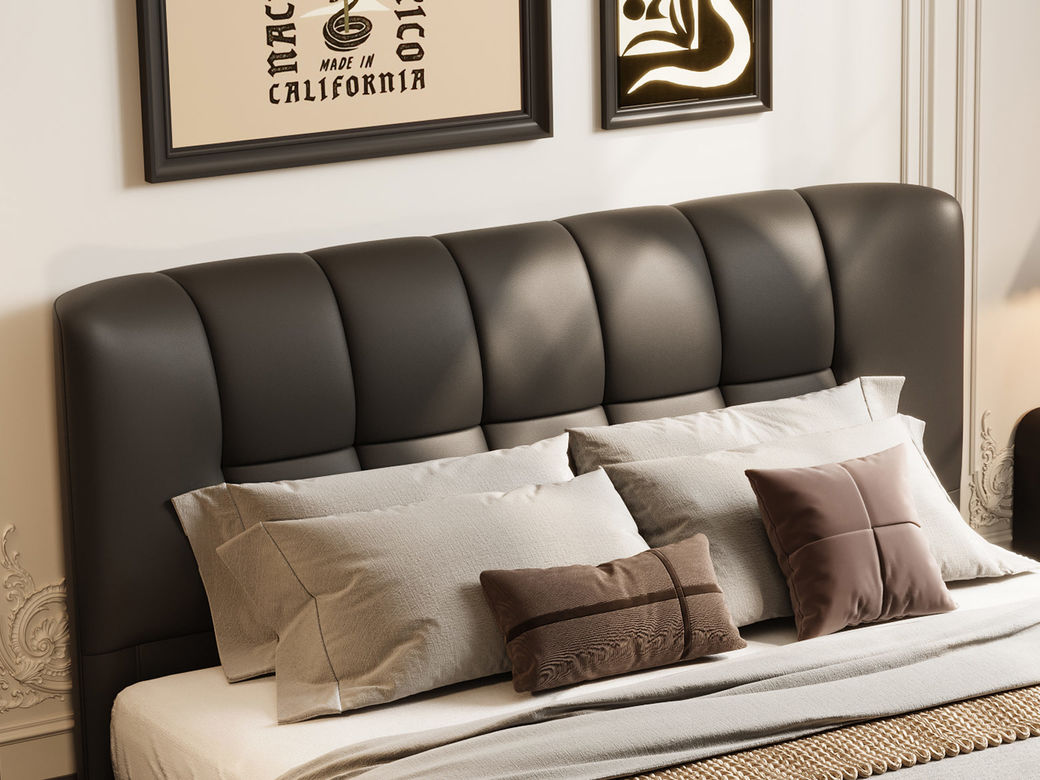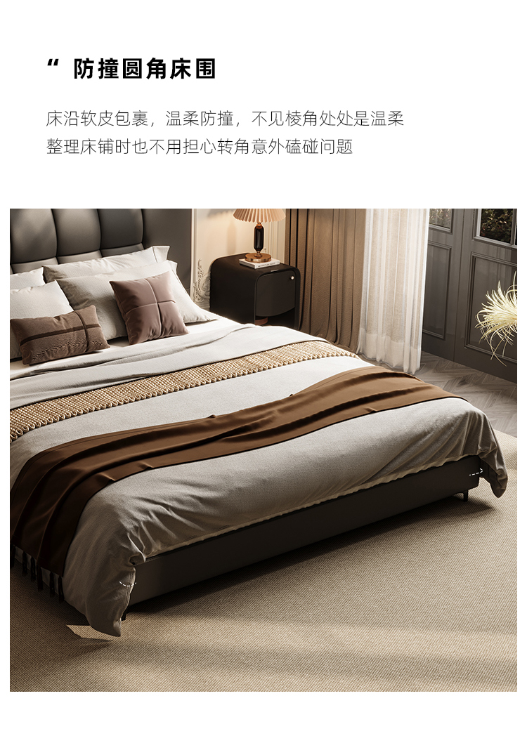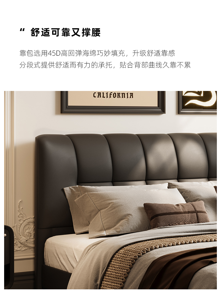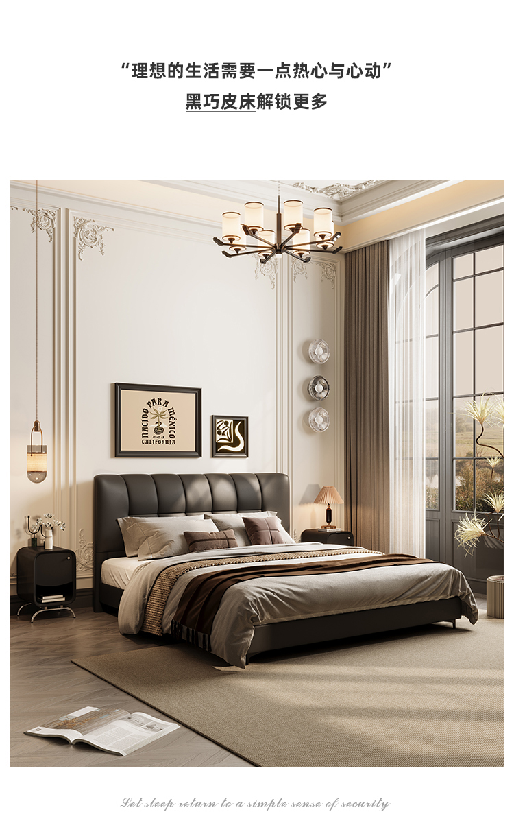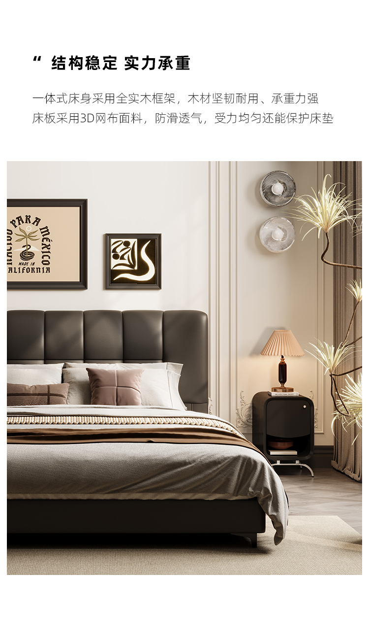 贝斯solo 设计师 网红 极简 接触面真皮 进口松木内架 高回弹海绵 静音床板 黑巧可可床 1.8米床