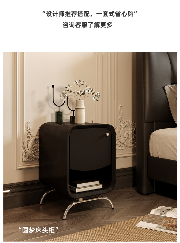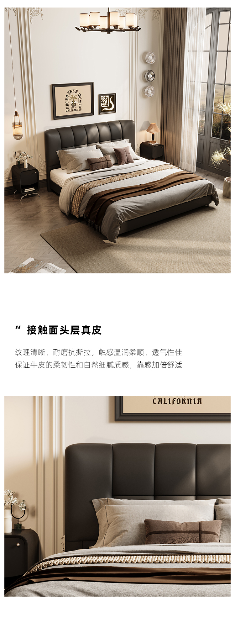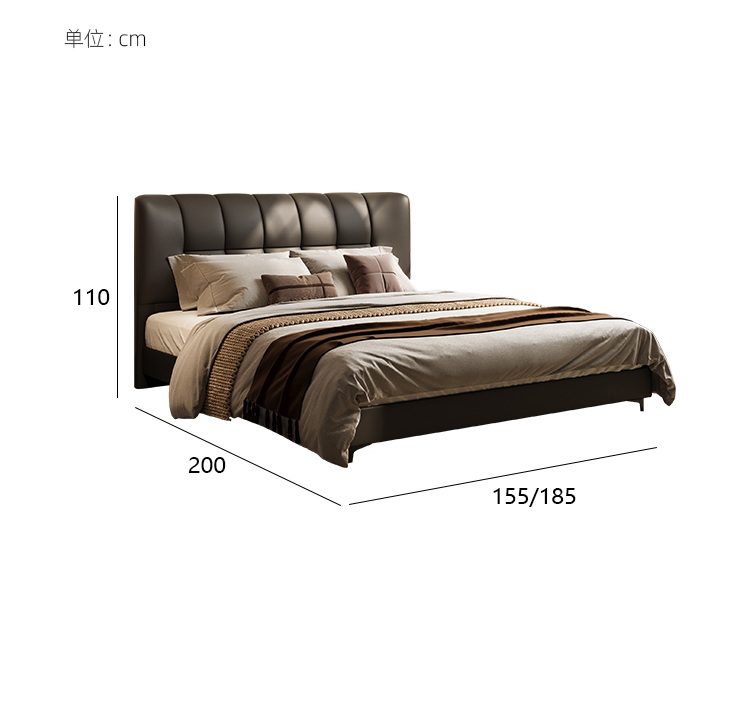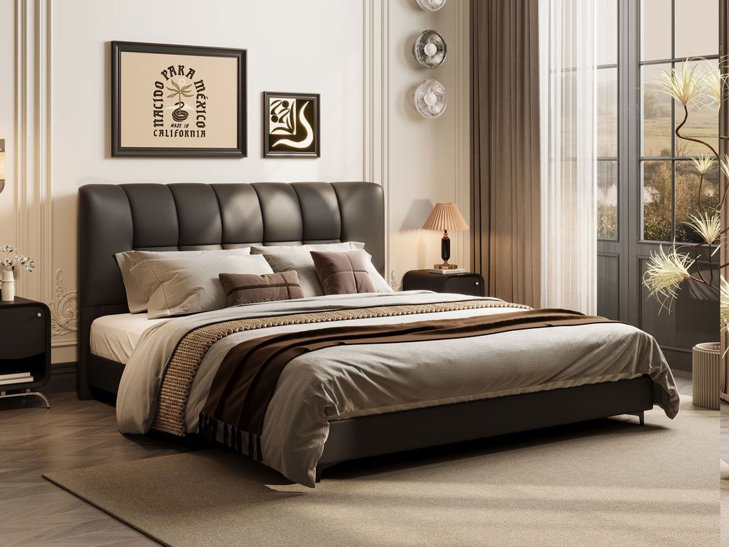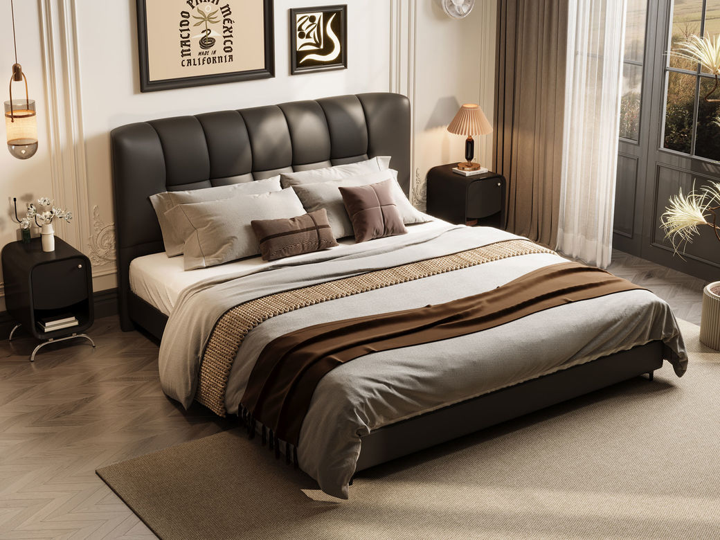 贝斯solo 设计师 网红 极简 接触面真皮 进口松木内架 高回弹海绵 静音床板 黑巧可可床 1.8米床