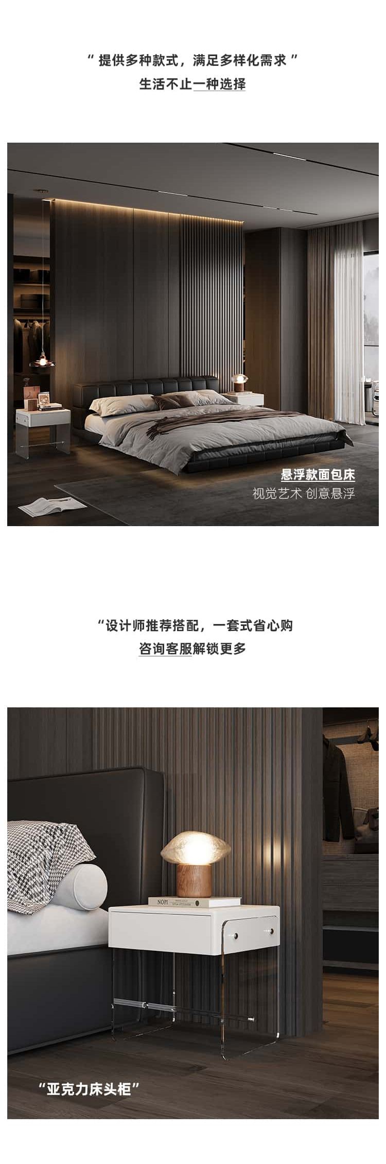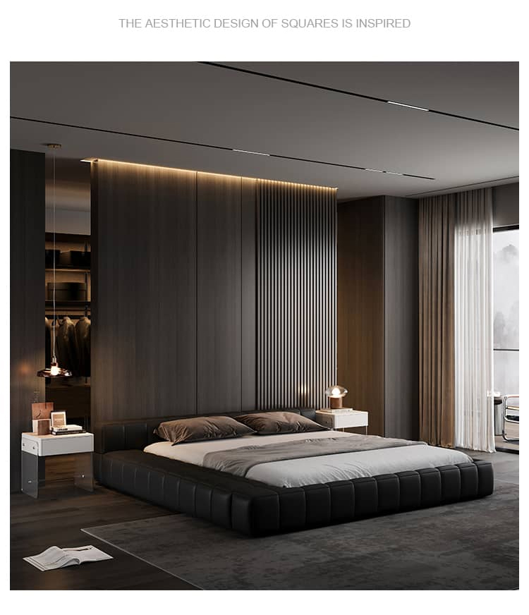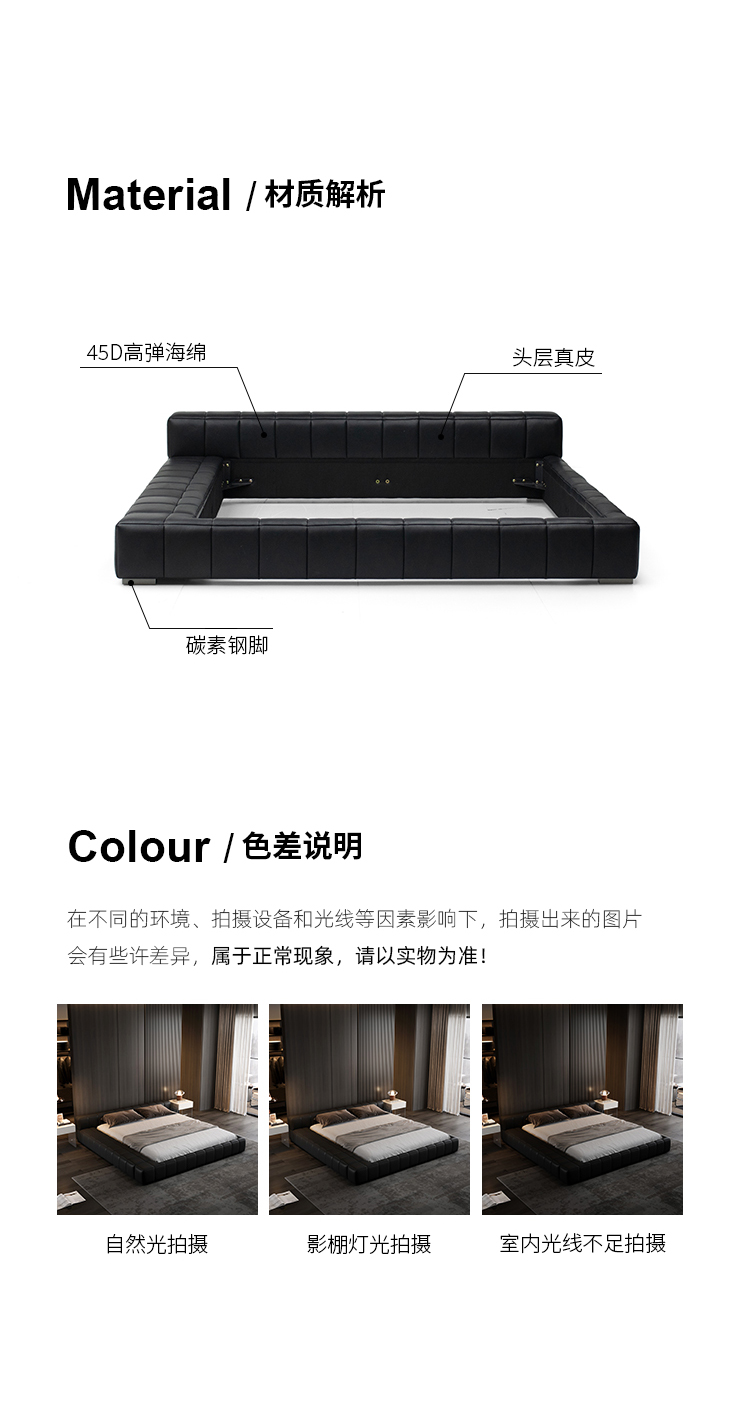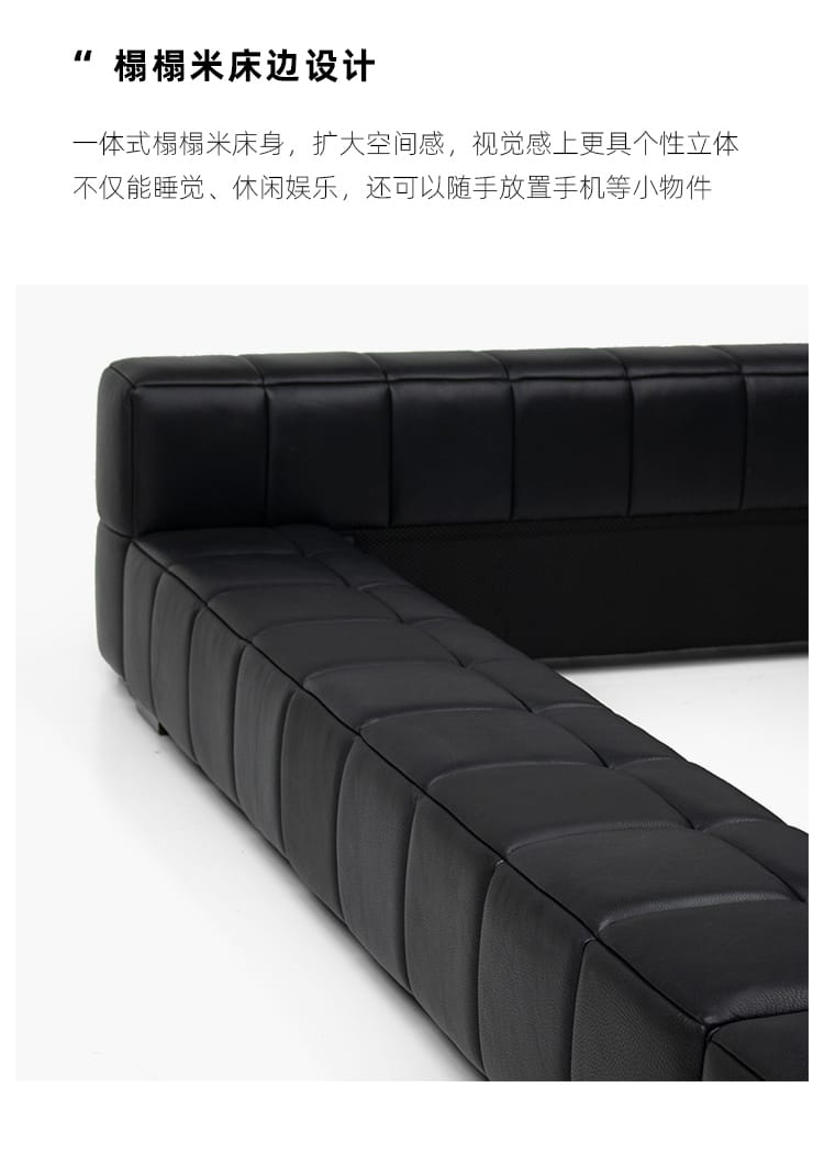洛萨 极简 接触面真皮 进口松木内架 高回弹海绵 静音床板 意式拉点床 1.8米床