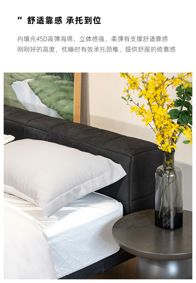 贝斯solo 设计师 网红 极简 接触面真皮 俄罗斯进口落叶松 优质羽绒靠包 静音床板 小象耳朵床 1.8米床