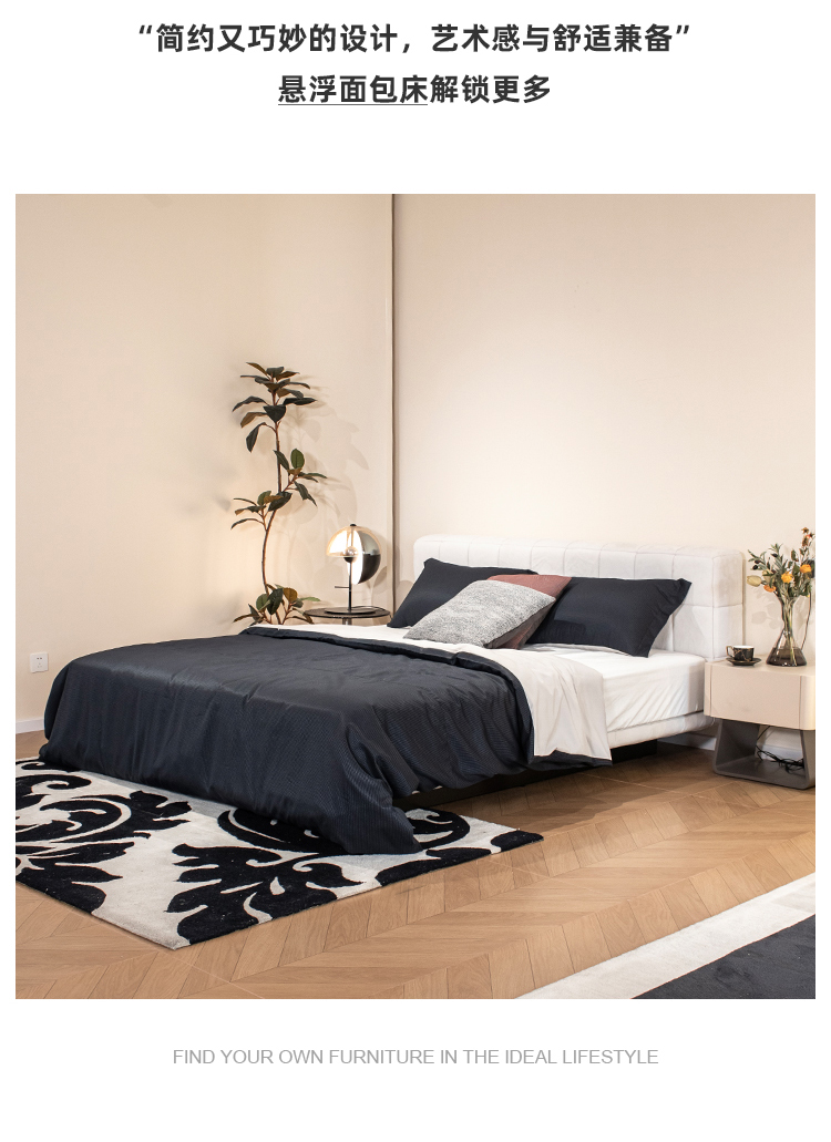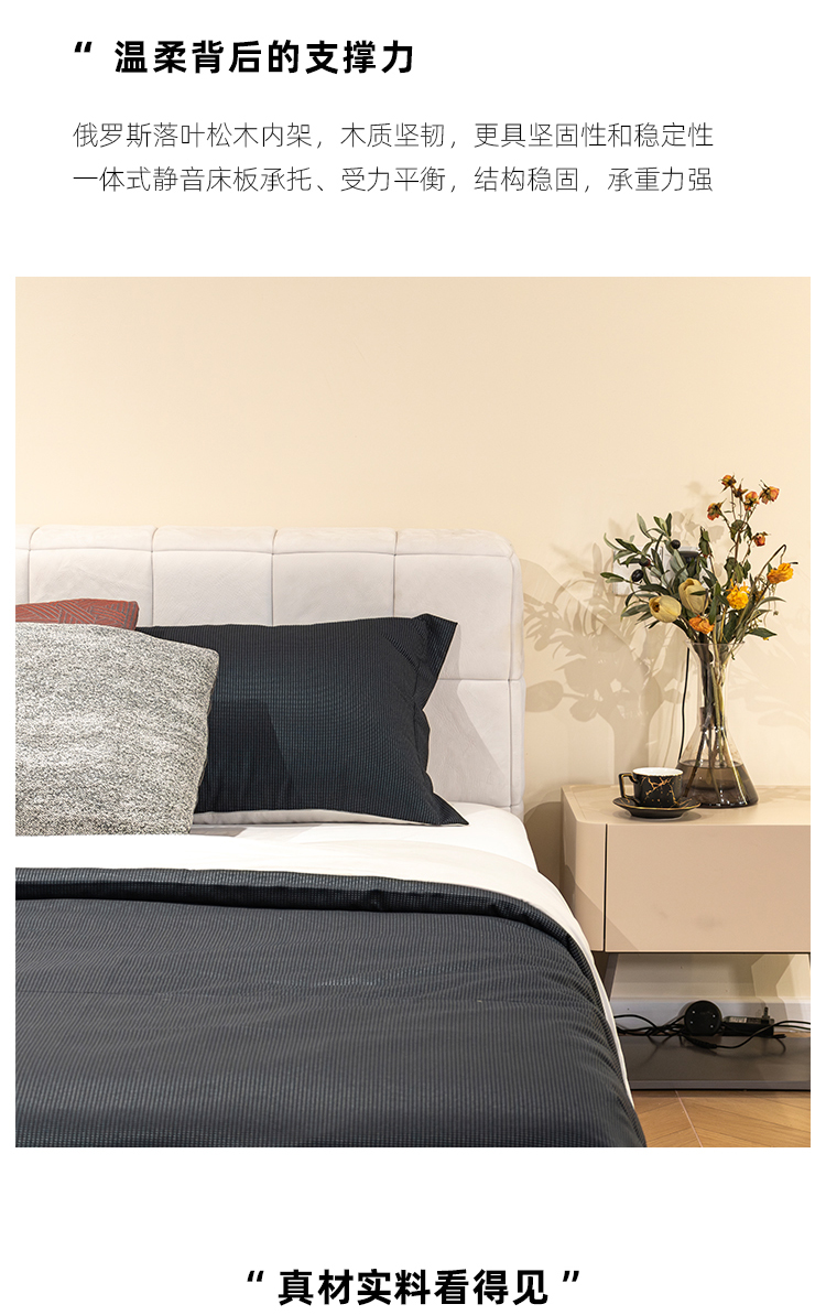 接触面贝斯solo 设计师 网红 极简 俄罗斯进口落叶松 优质高回弹海绵靠包 静音床板 香奈儿床 1.8米床