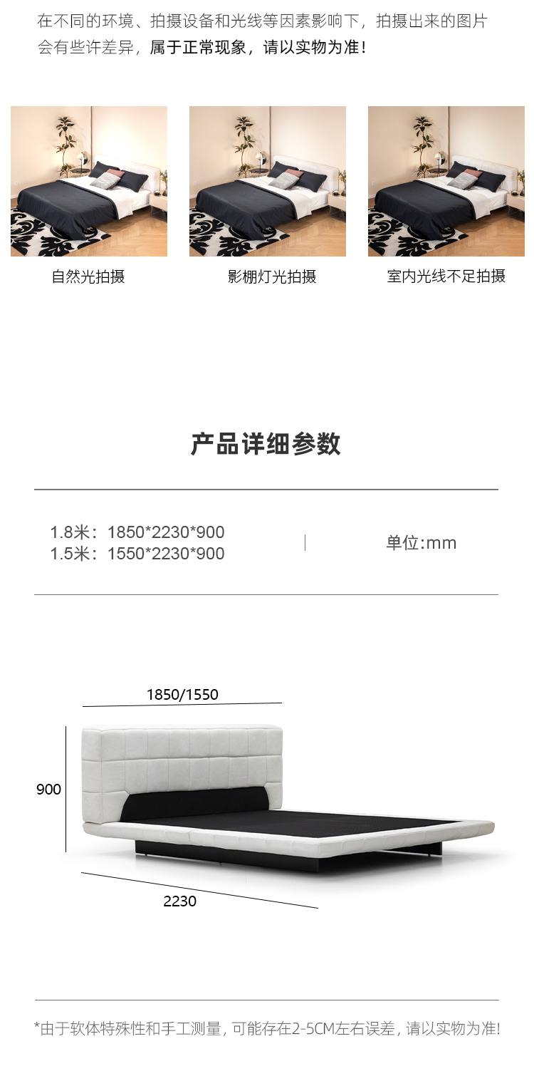 贝斯solo 设计师 网红 极简 接触面全磨砂真皮 进口松木内架 高回弹海绵 静音床板 魔方格悬浮床 1.8米床¥6250