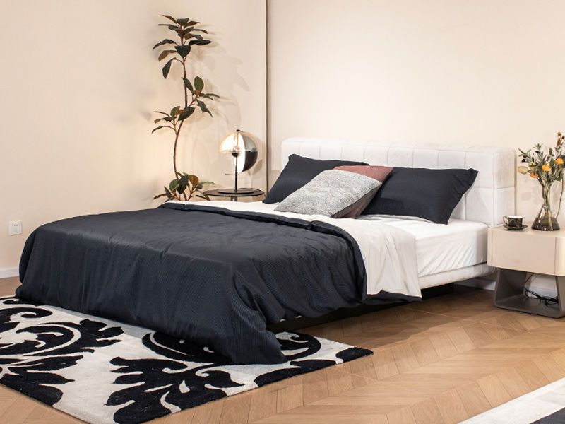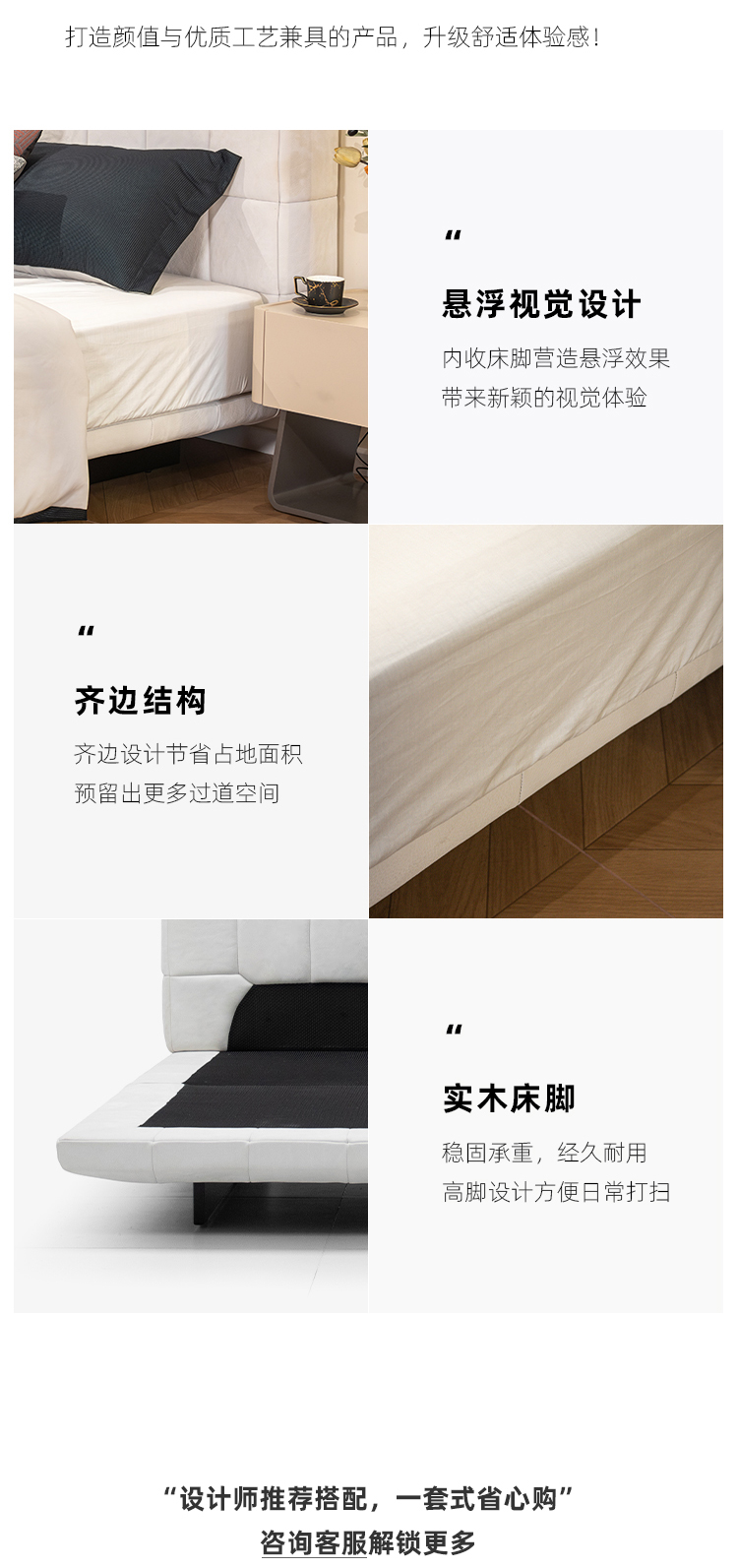 贝斯solo 设计师 网红 极简 接触面真皮 俄罗斯进口落叶松 优质羽绒靠包 静音床板 小象耳朵床 1.8米床