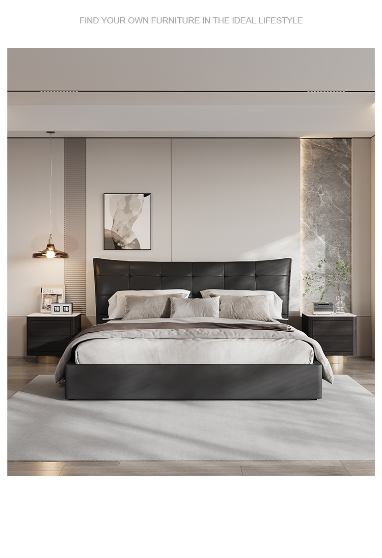 贝斯solo 设计师 网红 极简 接触面真皮 进口松木内架 高回弹海绵 静音床板 黑巧可可床 1.8米床¥5435