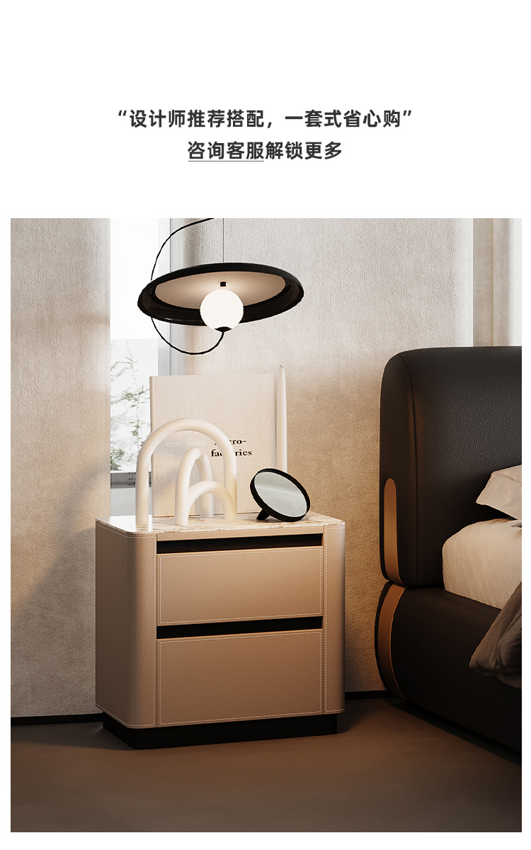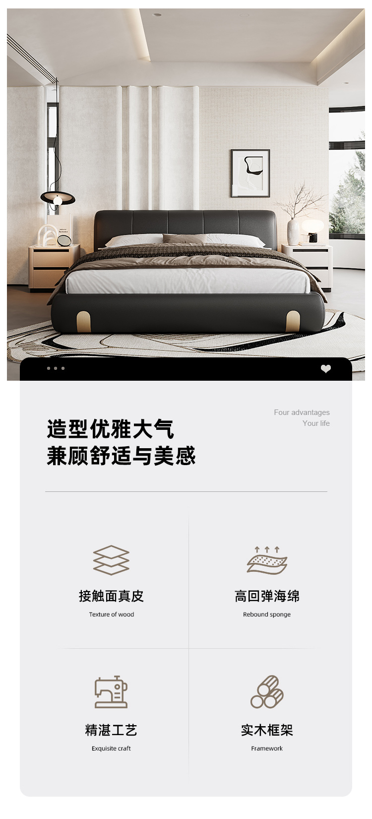 贝斯solo 设计师 网红 极简 接触面真皮 俄罗斯进口落叶松 优质羽绒靠包 静音床板 小象耳朵床 1.8米床