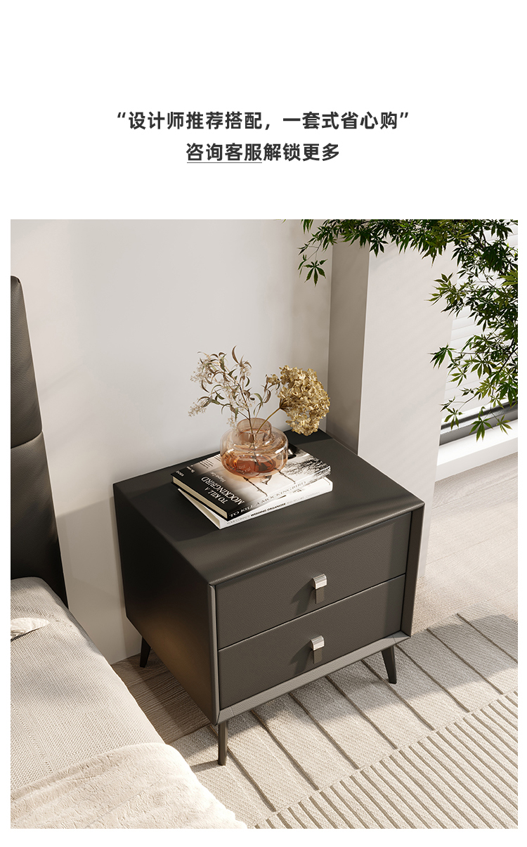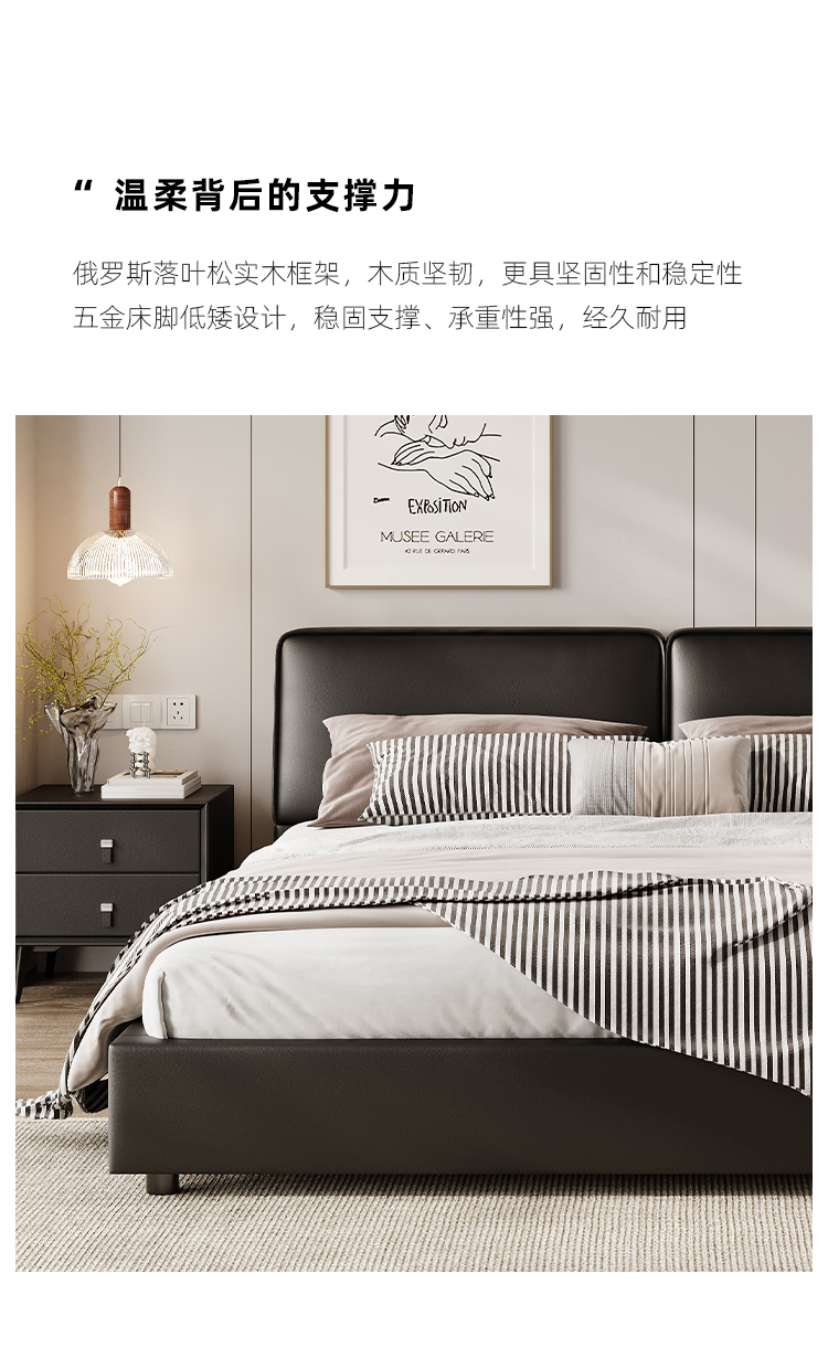 贝斯solo 设计师 网红 极简 接触面真皮 俄罗斯进口落叶松 优质羽绒靠包 静音床板 小象耳朵床 1.8米床