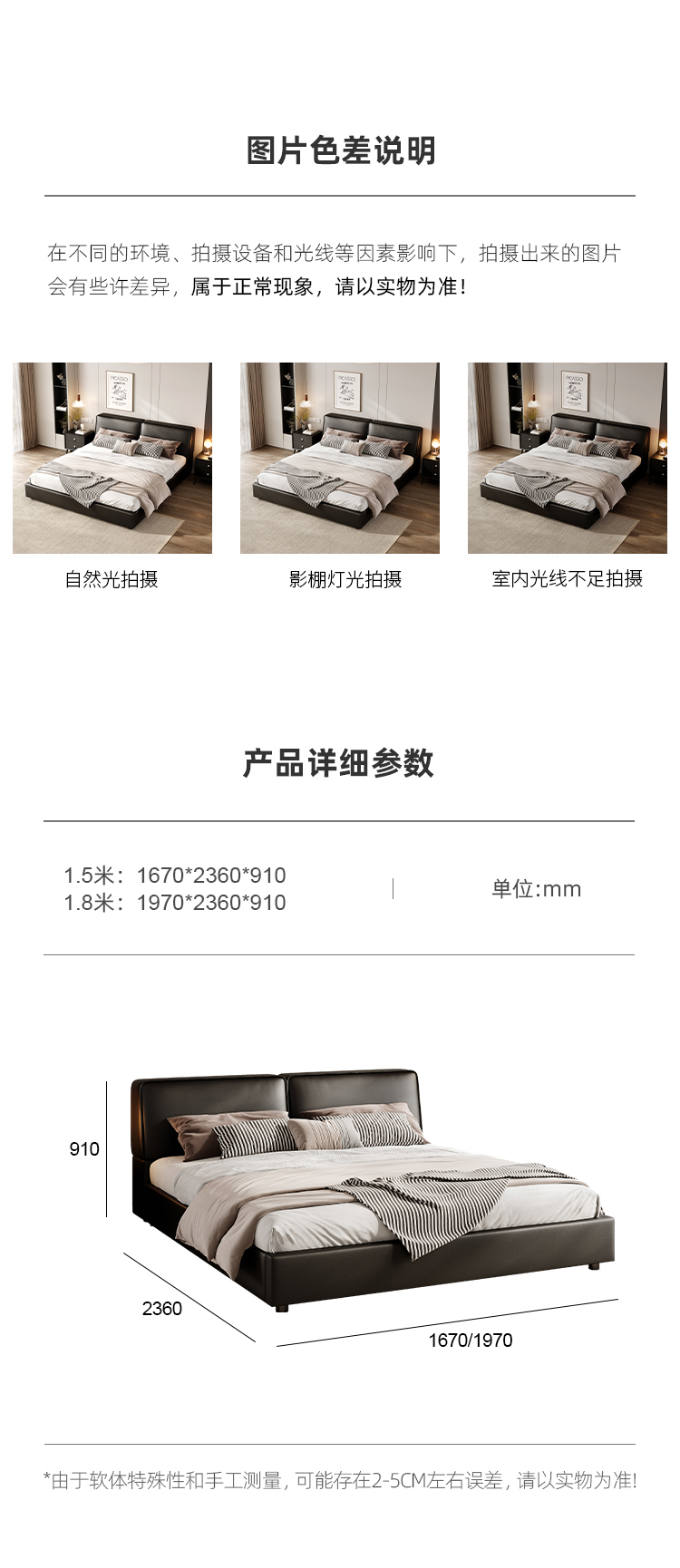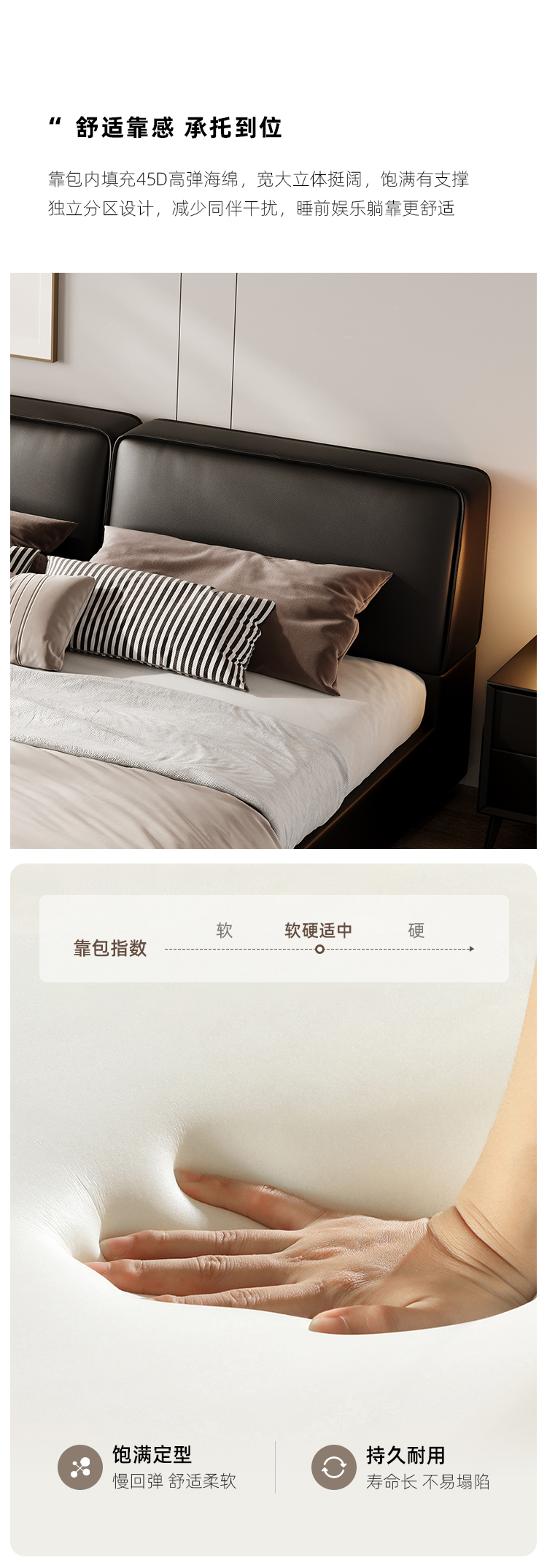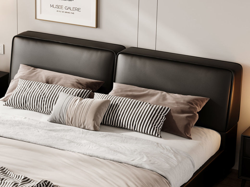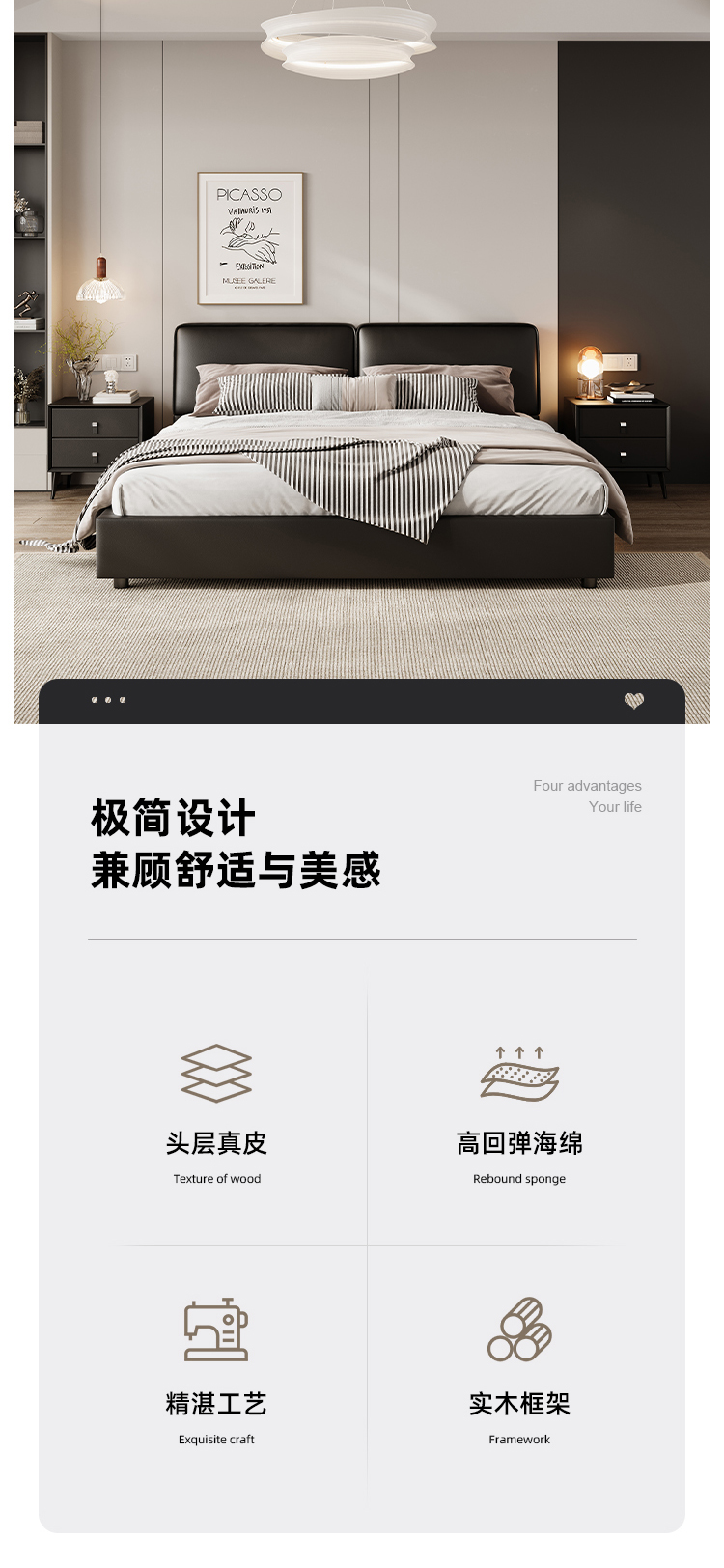 贝斯solo 设计师 网红 极简 接触面真皮 进口松木内架 高回弹海绵 静音床板 黑巧可可床 1.8米床¥5435