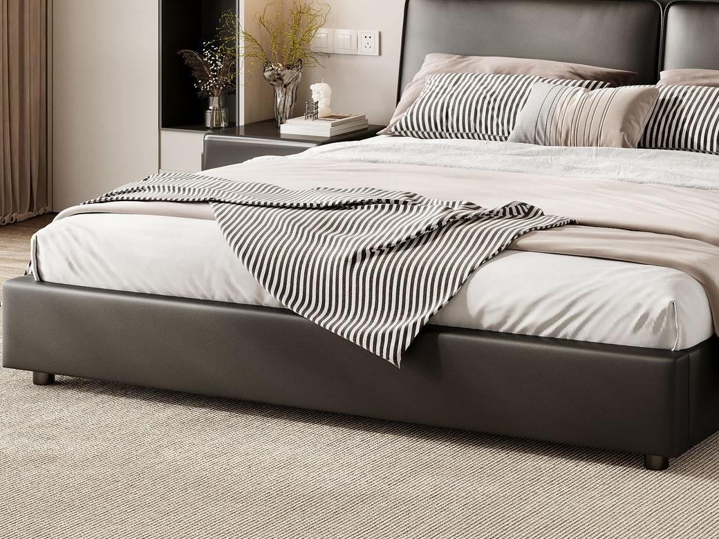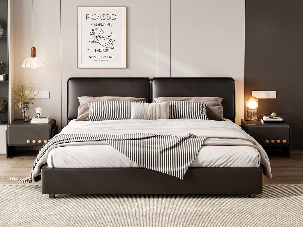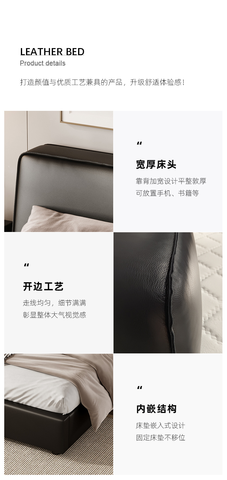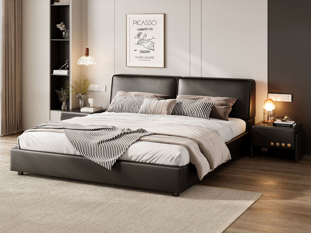 贝斯solo 设计师 网红 极简 接触面真皮 进口松木内架 高回弹海绵 静音床板 黑巧可可床 1.8米床¥5435