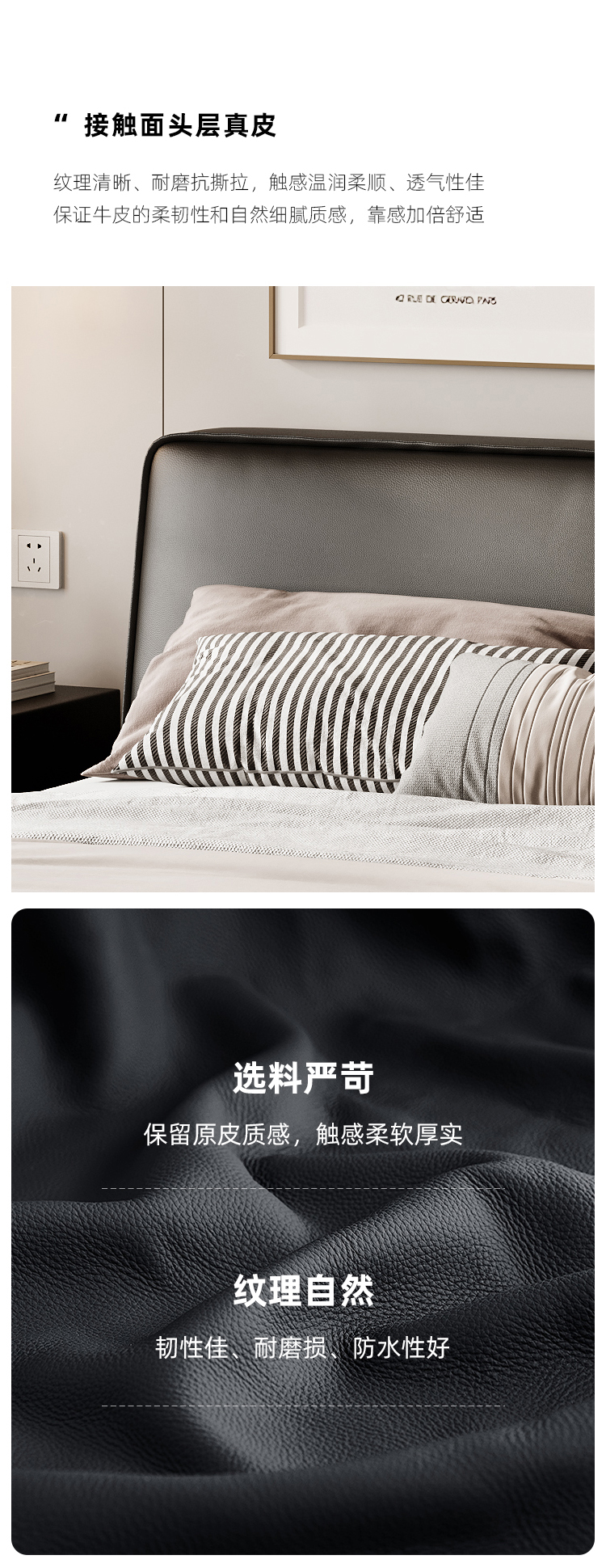 贝斯solo 设计师 网红 极简 接触面真皮 进口松木内架 高回弹海绵 静音床板 Onda悬浮床 1.8米床