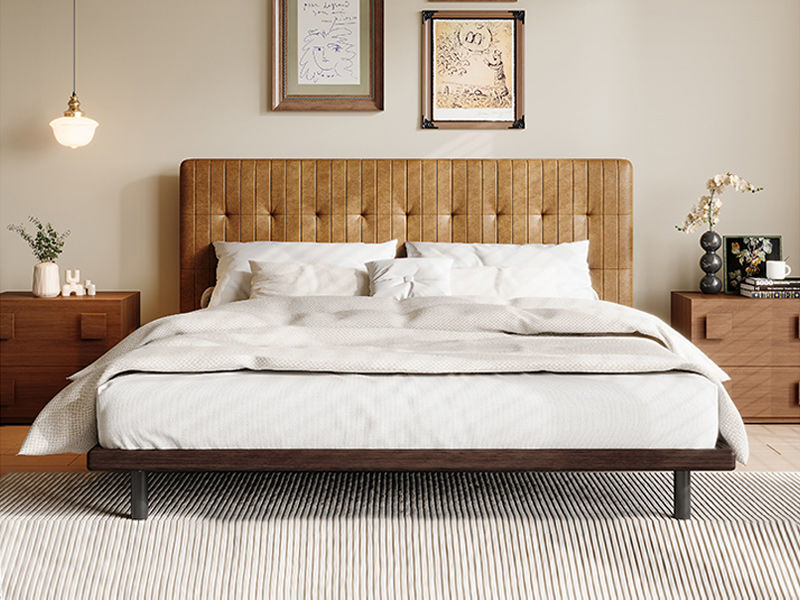 洛萨 极简 接触面真皮 进口松木内架 高回弹海绵 钢木排骨架 真皮面包床 1.8米床¥8139
