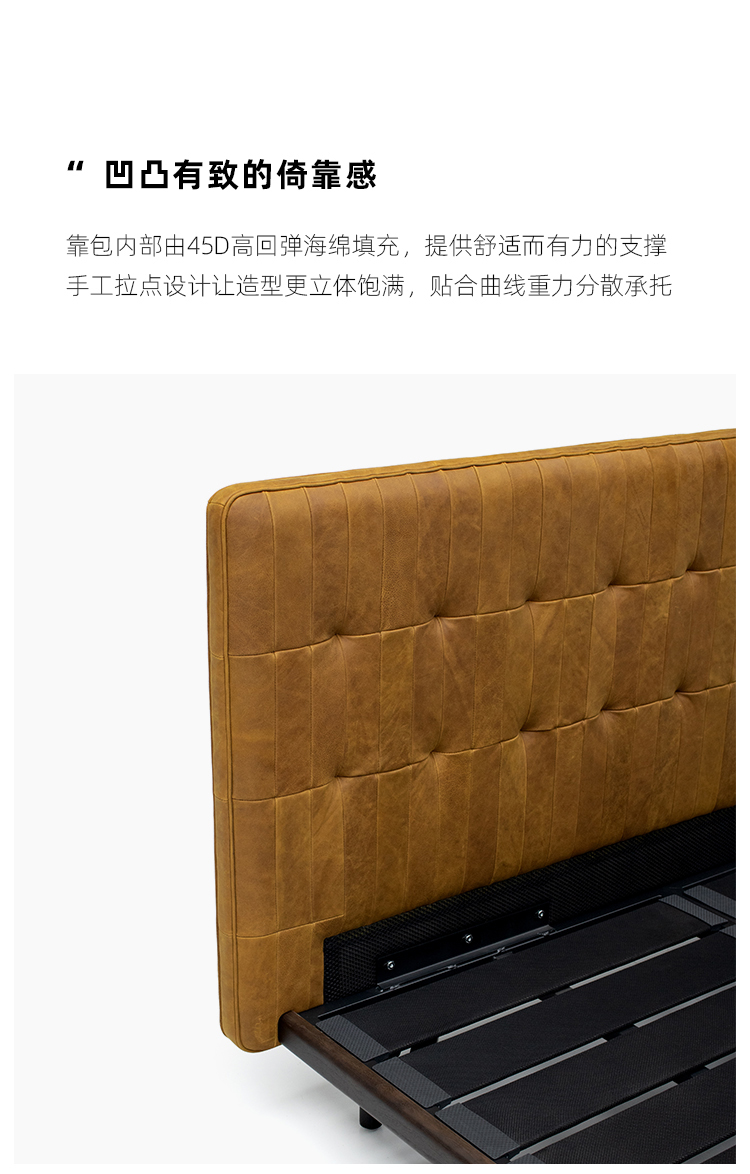 洛萨 极简 接触面真皮 进口松木内架 高回弹海绵 钢木排骨架 真皮面包床 1.8米床¥8139