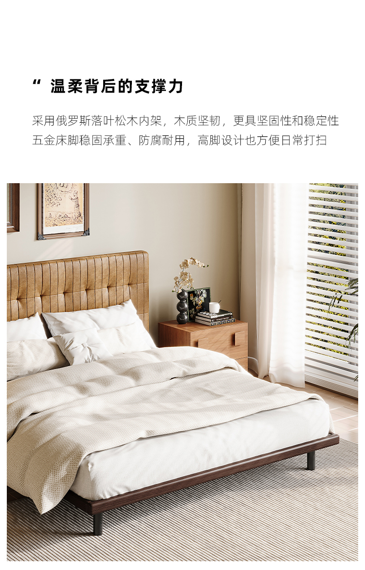 洛萨 现代极简 俄罗斯进口木方 +高回弹海绵+接触面进口头层牛皮+钢木宽排排骨架 软床¥4823