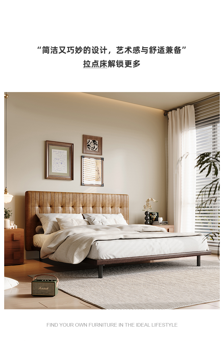 洛萨 极简 接触面真皮 进口松木内架 高回弹海绵 静音床板 意式拉点床 1.8米床