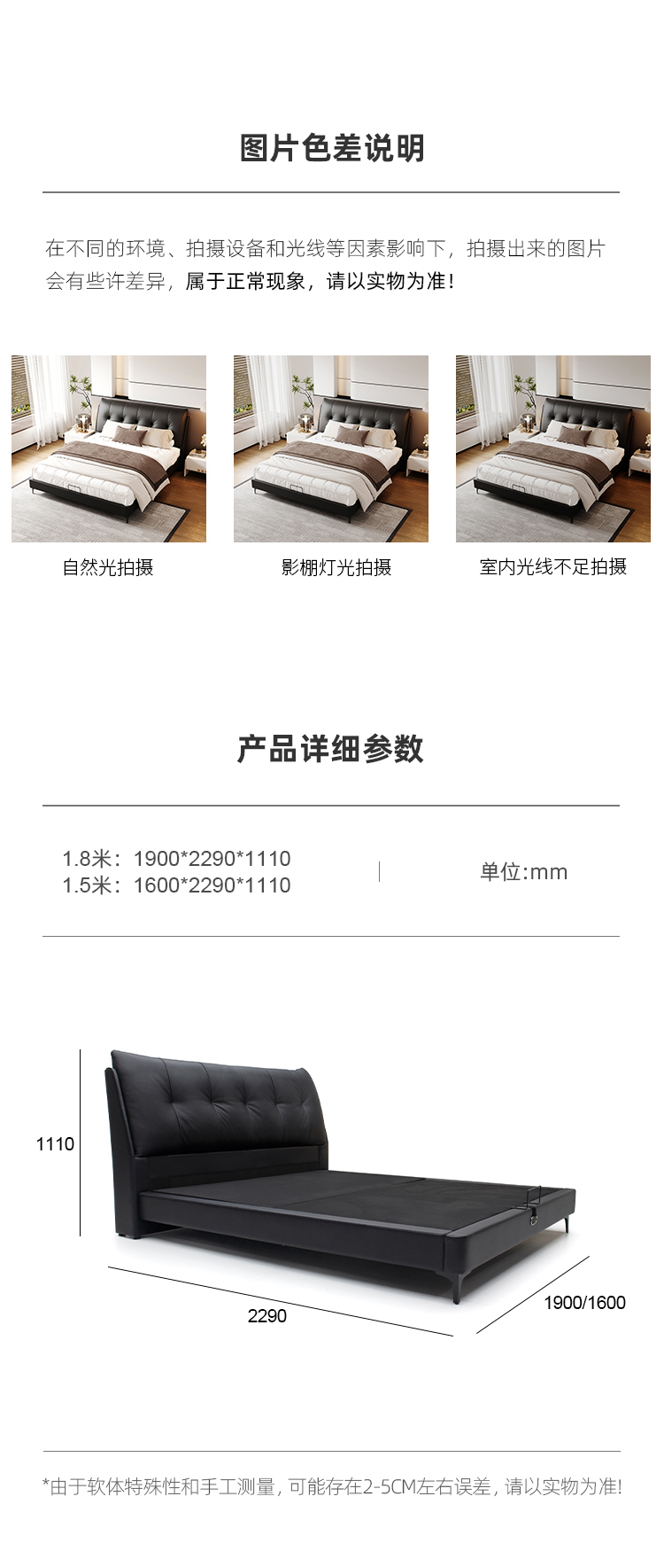 贝斯solo 设计师 网红 极简 接触面真皮 进口松木内架 高回弹海绵 静音床板 黑巧可可床 1.8米床¥5435