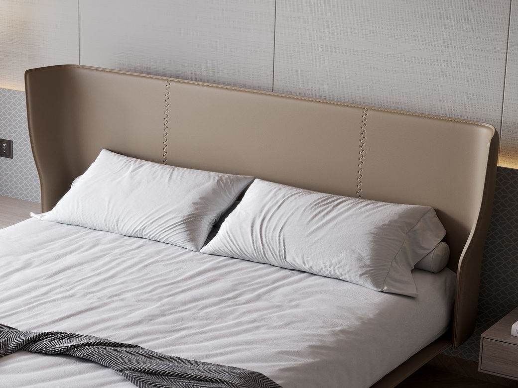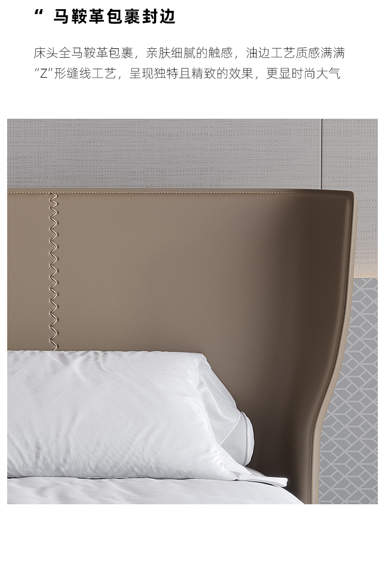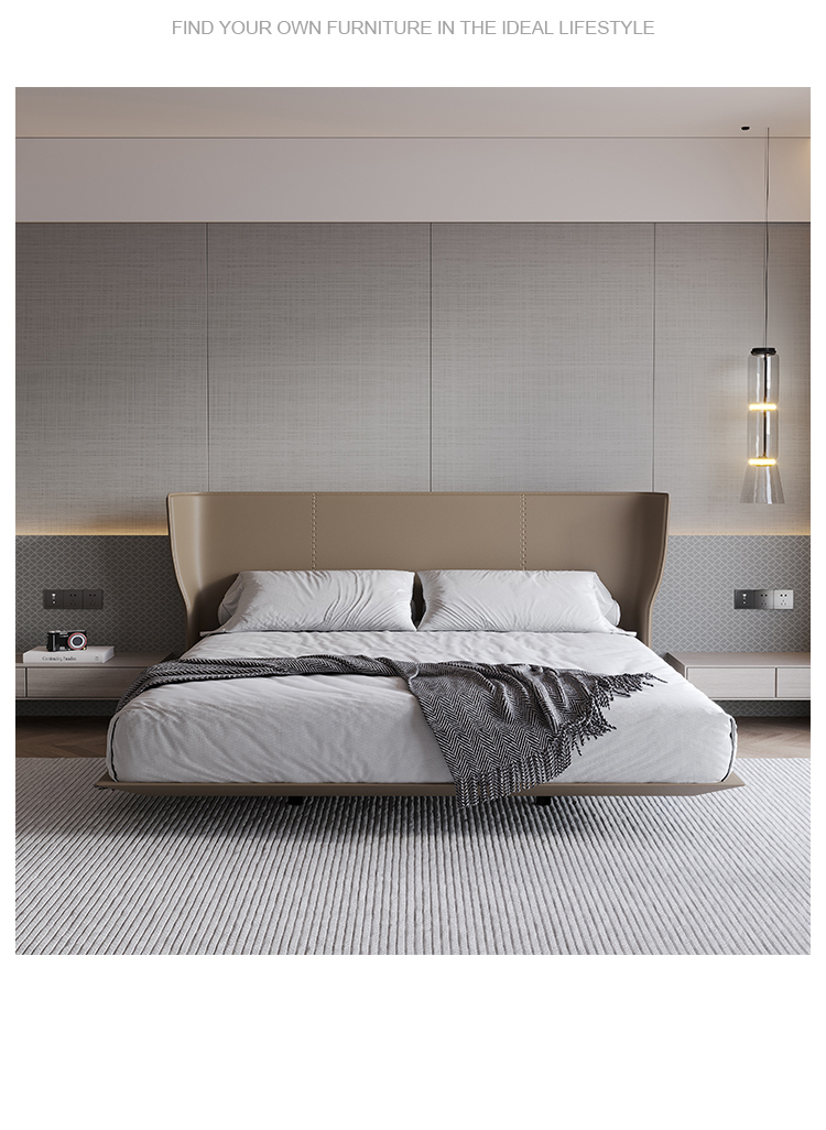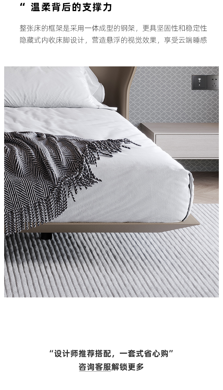 贝斯solo 设计师 网红 极简 接触面真皮 俄罗斯进口落叶松 优质羽绒靠包 静音床板 小象耳朵床 1.8米床¥8139
