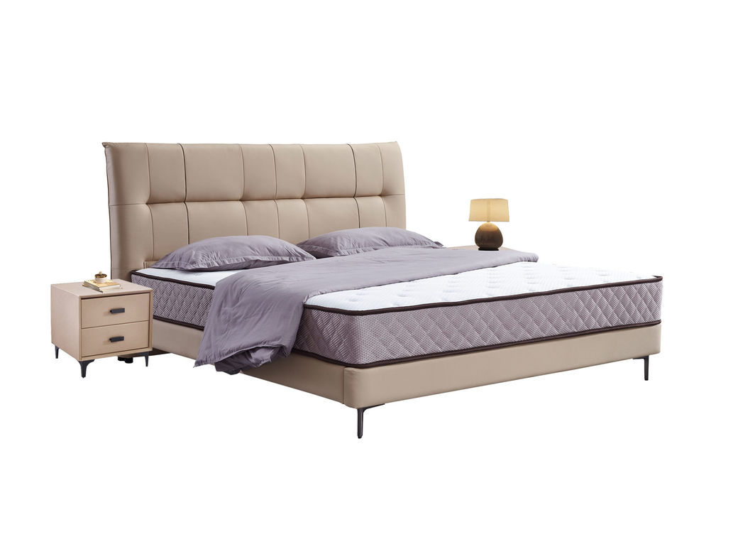 【套餐专享价】每屋优享系列 现代简约 实木内架+高回弹海绵+钢木排骨架+接触面头层真皮 1.8米床+床头柜*2