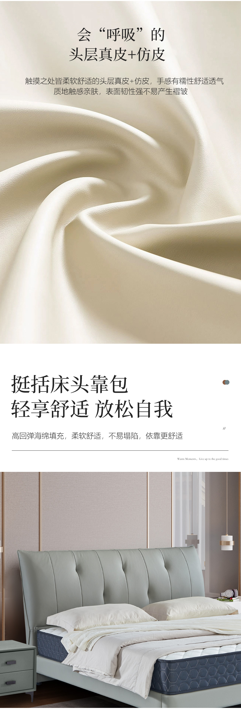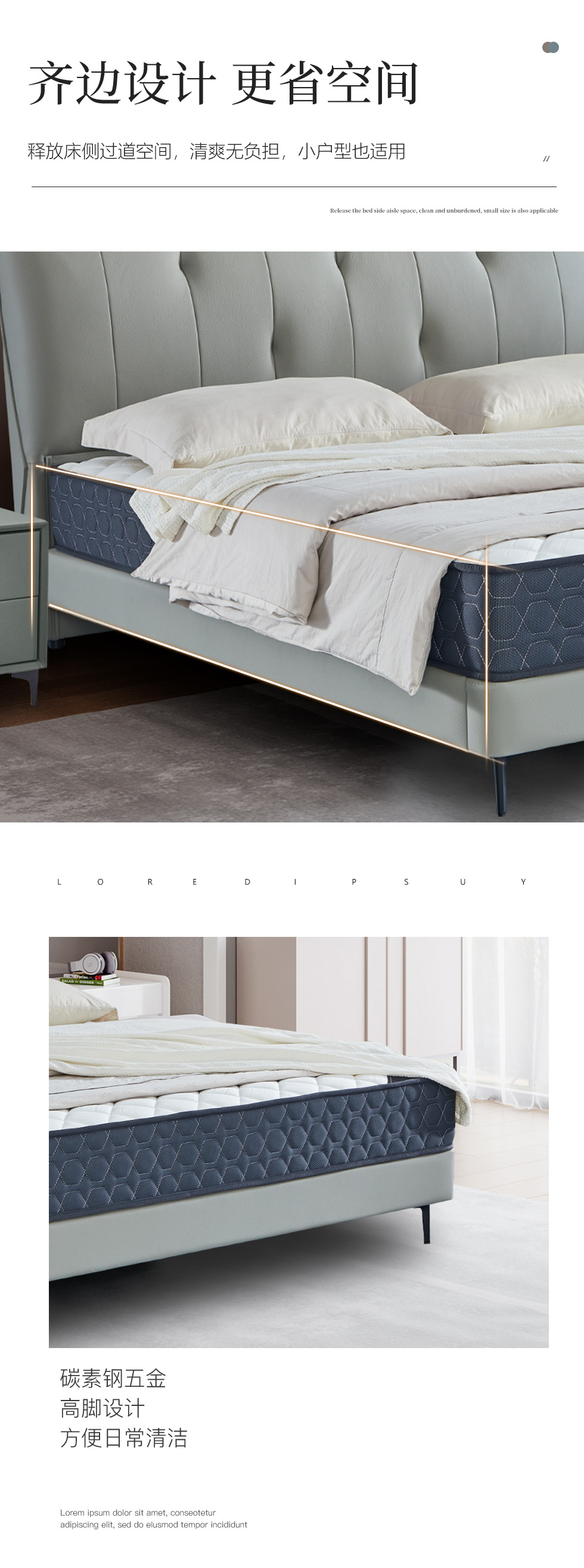 【套餐专享价】每屋优享系列 现代简约 实木内架+高回弹海绵+钢木排骨架+接触面头层真皮 1.8米床+床头柜*2¥2330