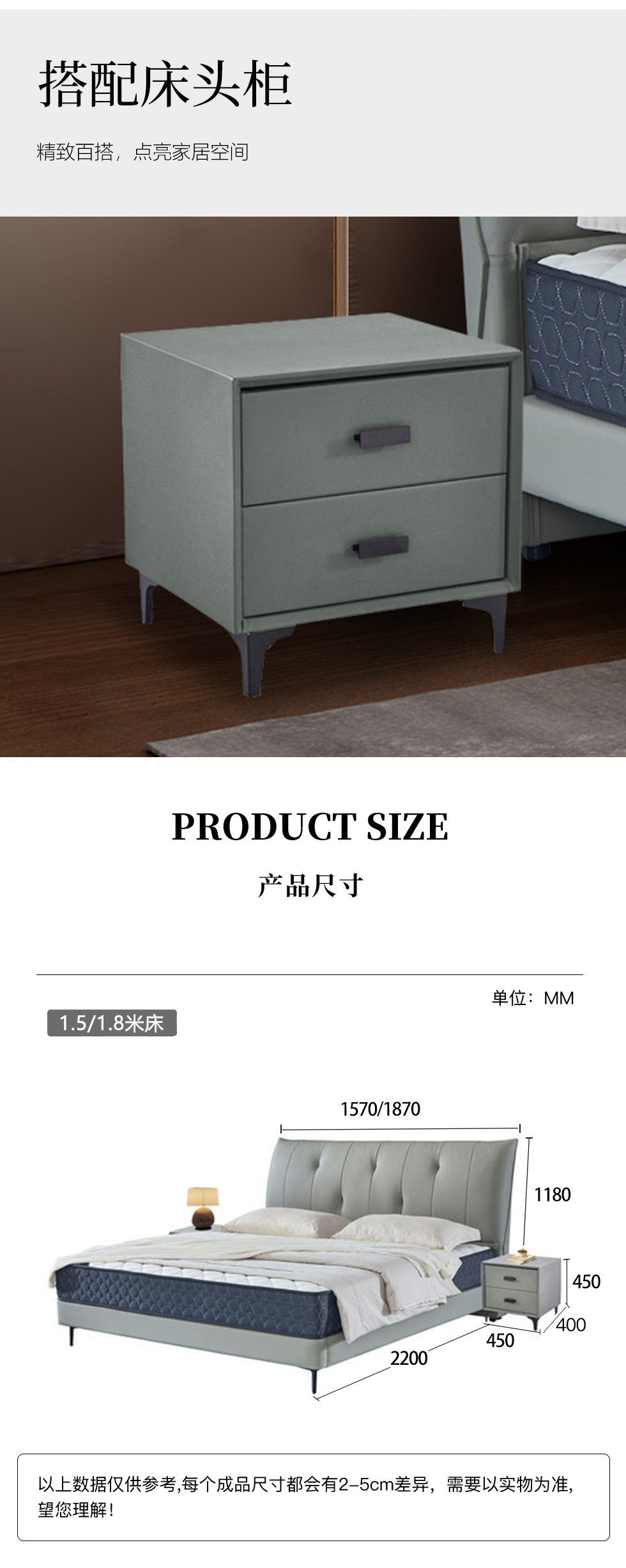 【套餐专享价】每屋优享系列 现代简约 实木内架+高回弹海绵+钢木排骨架+接触面头层真皮 1.8米床+床头柜*2¥2330