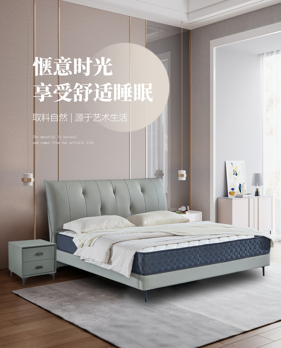 【套餐专享价】每屋优享系列 现代简约 实木内架+高回弹海绵+钢木排骨架+接触面头层真皮 1.8米床+床头柜*2¥2330
