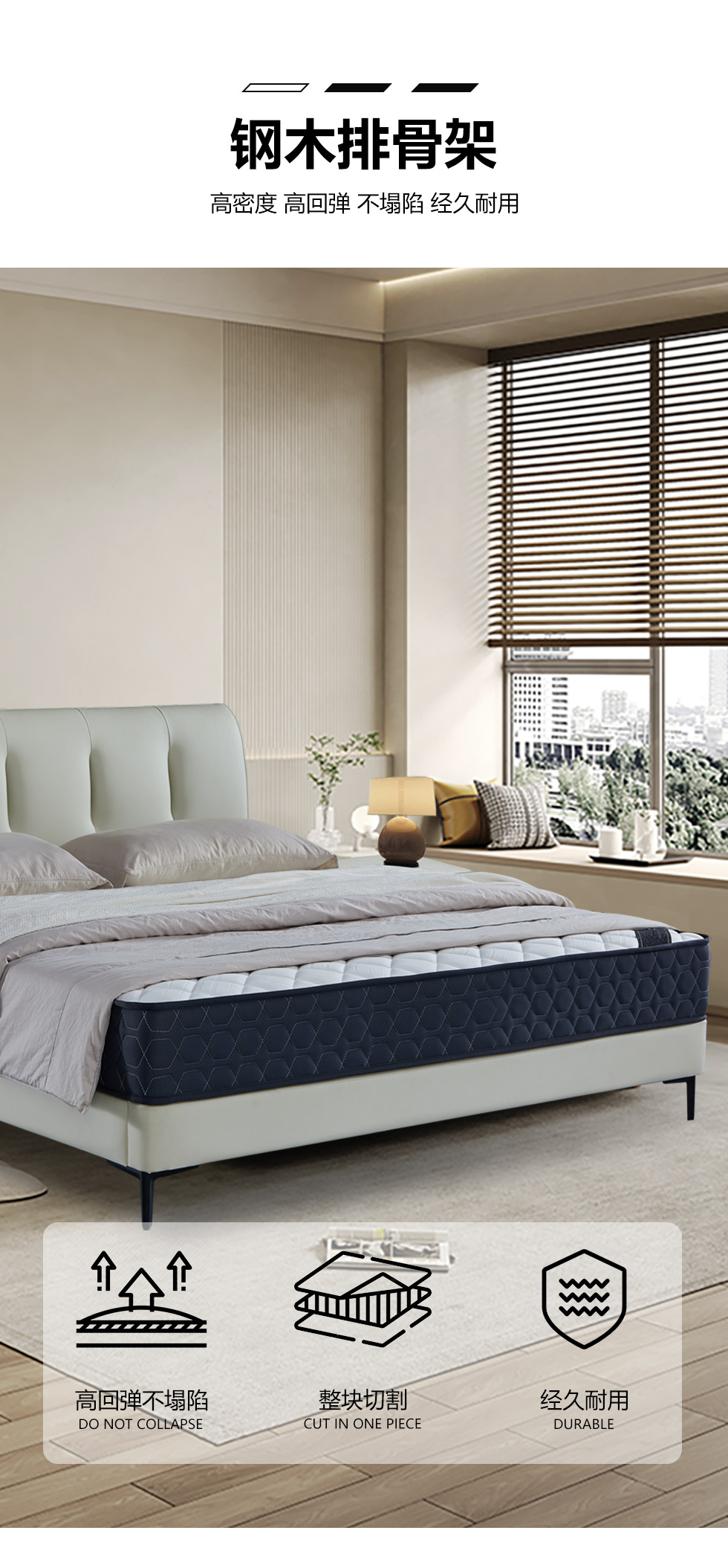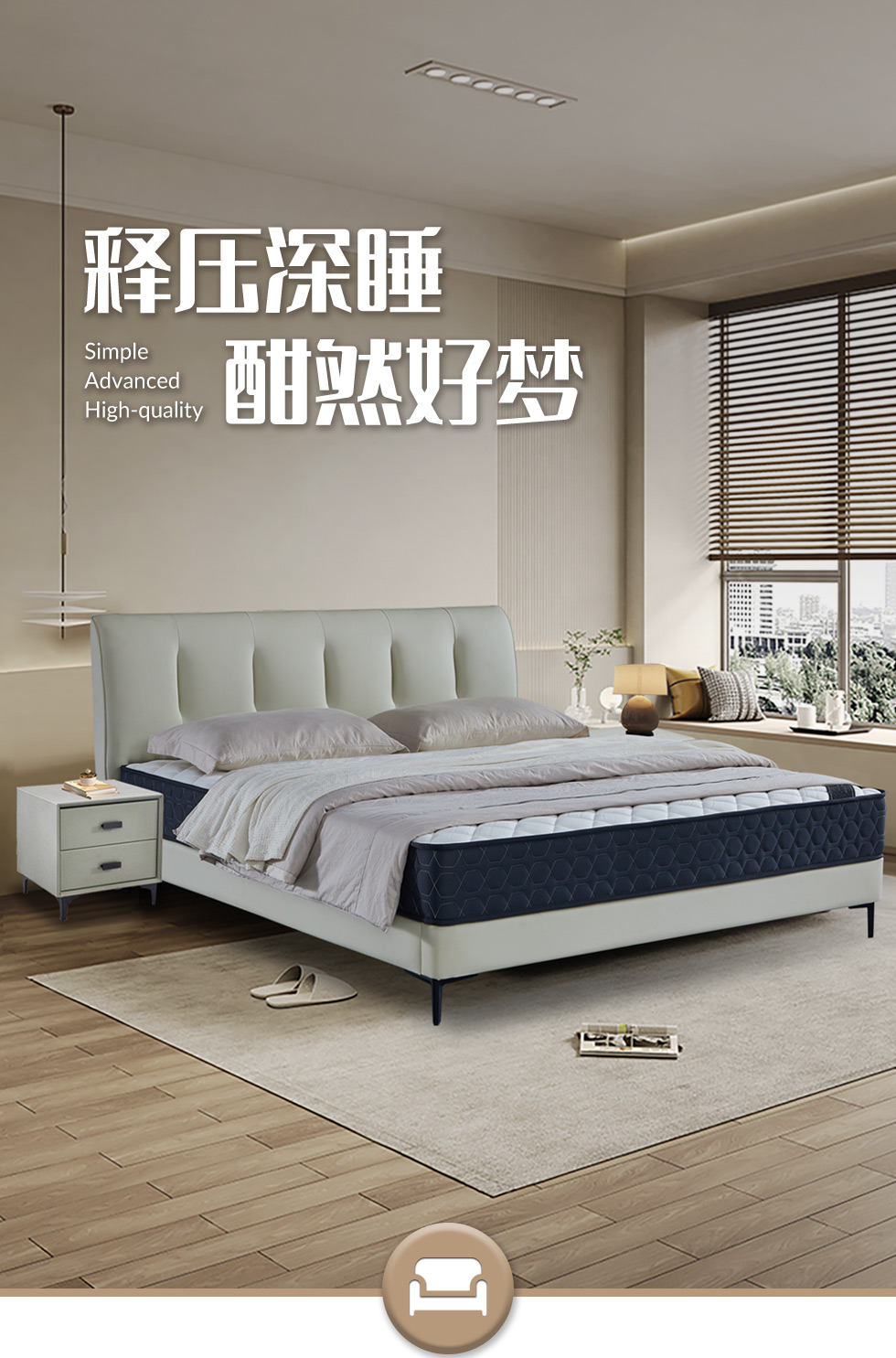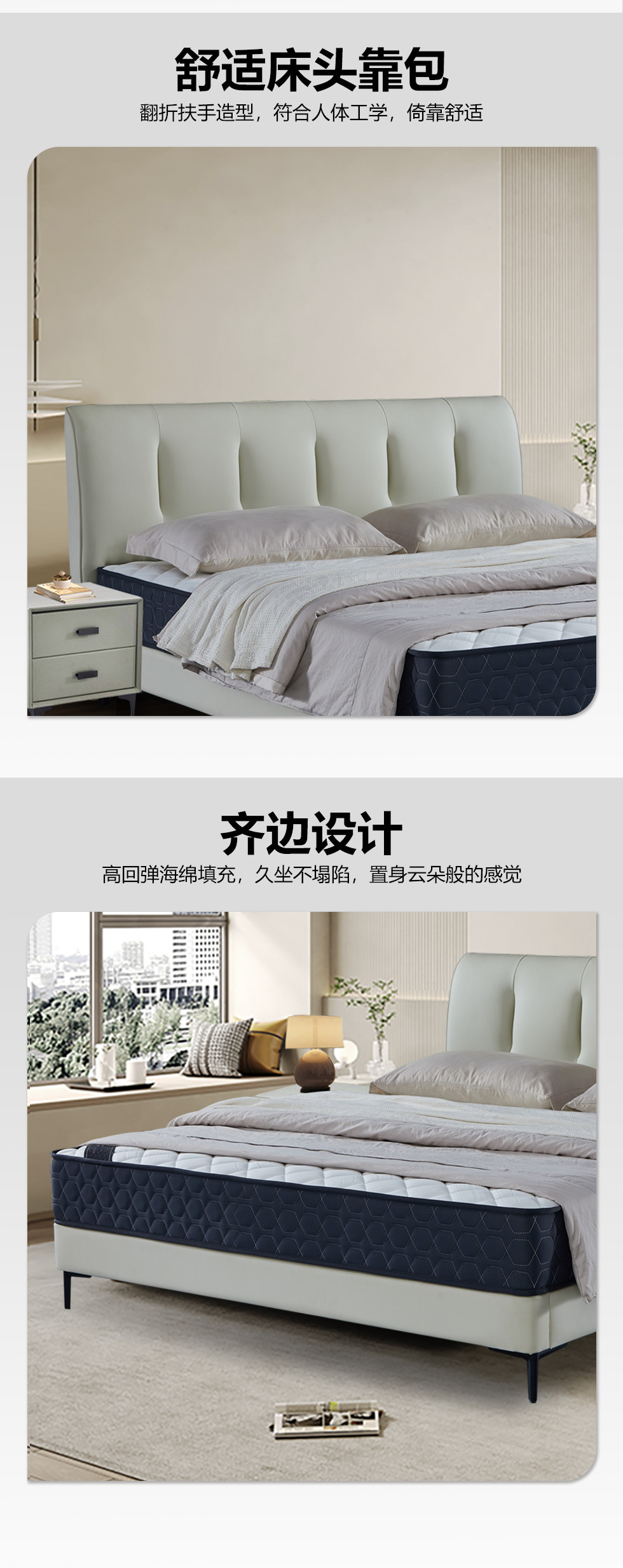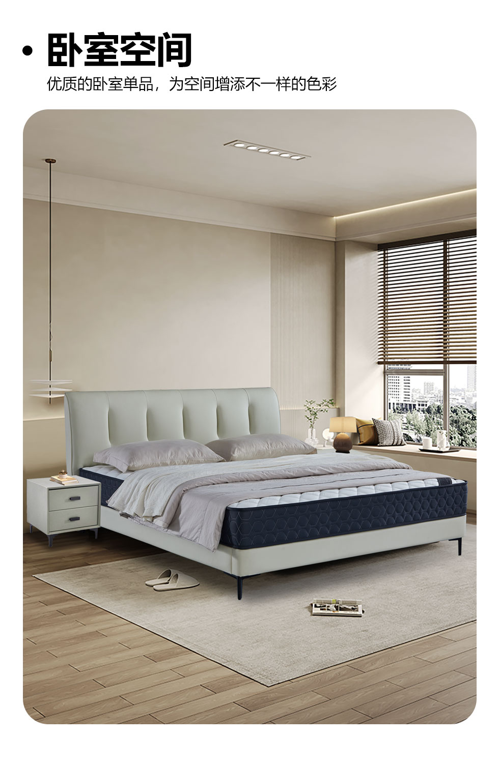 【套餐专享价】每屋优享系列 现代简约 实木内架+高回弹海绵+钢木排骨架+生态真皮 1.8米床+床头柜*2