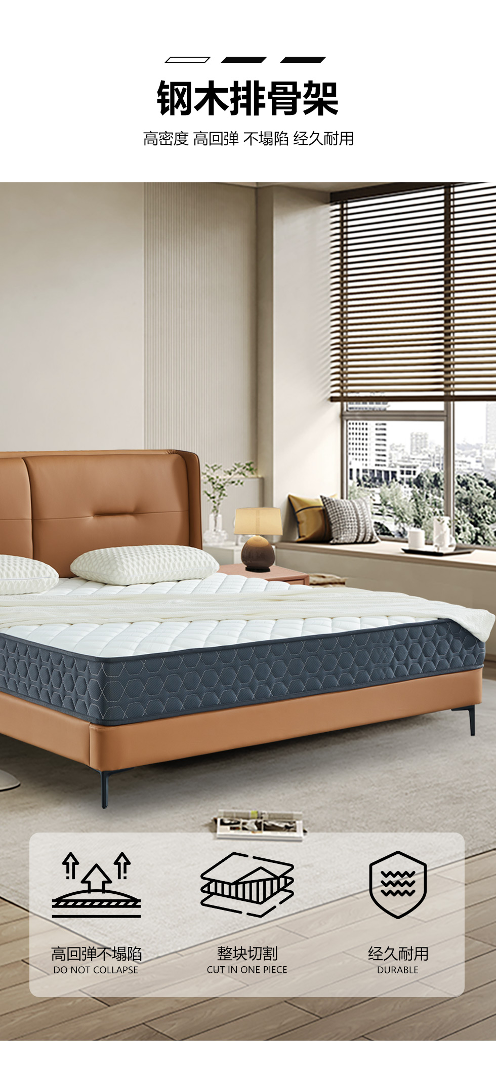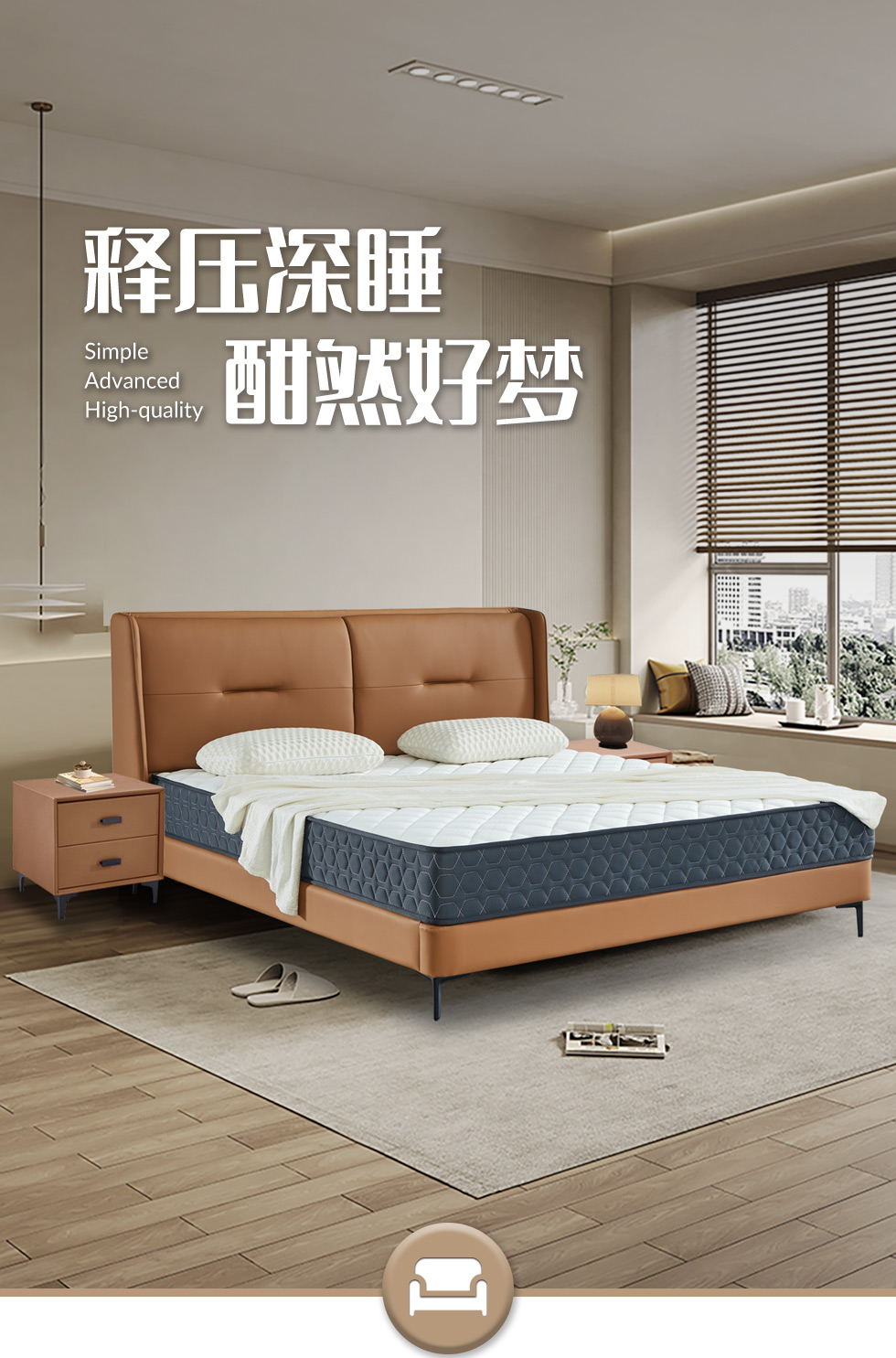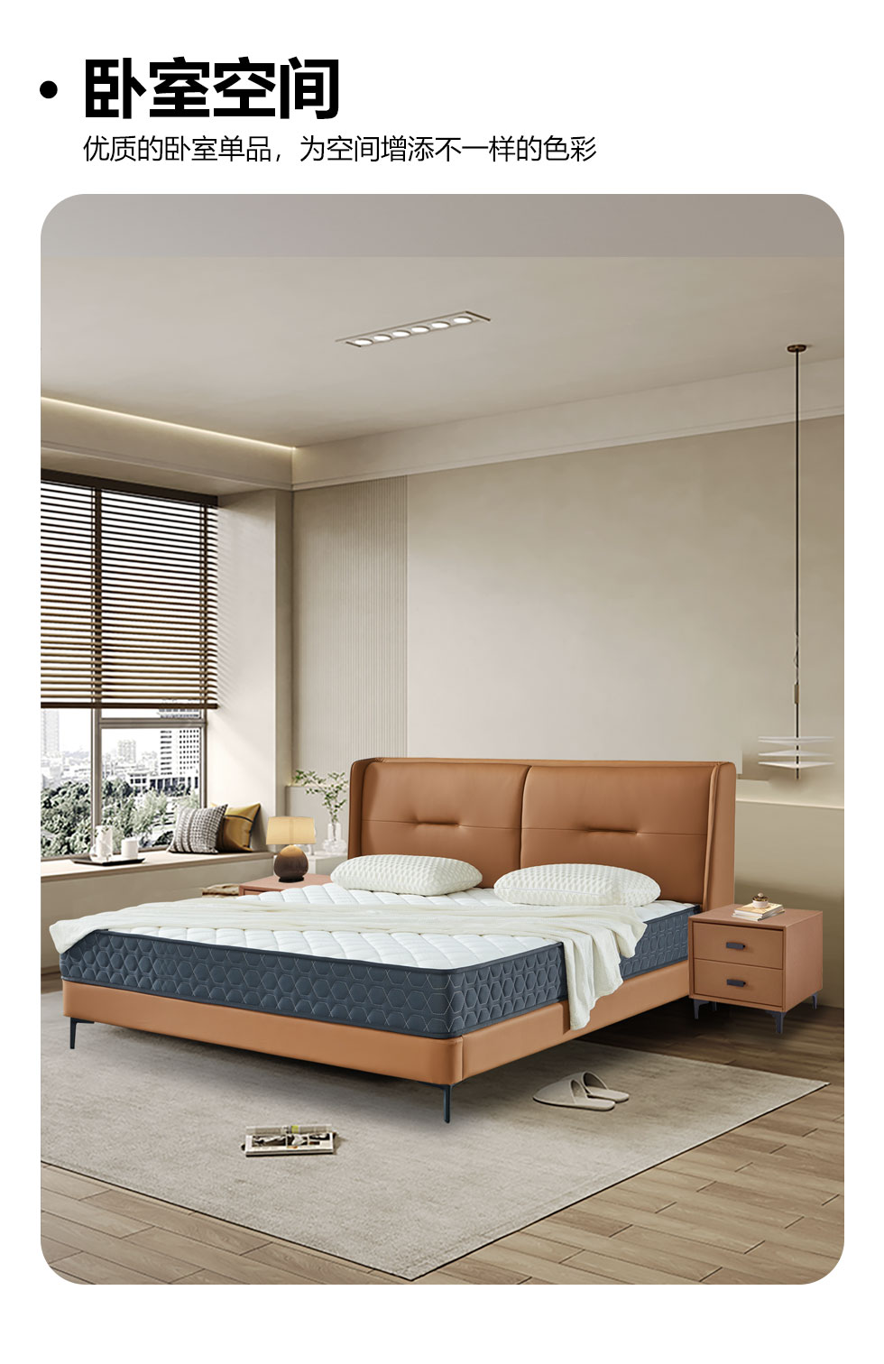 【套餐专享价】每屋优享系列 现代简约 实木内架+高回弹海绵+钢木排骨架+生态真皮+中纤板+仿皮+碳素钢脚 1.8米床+床头柜*2