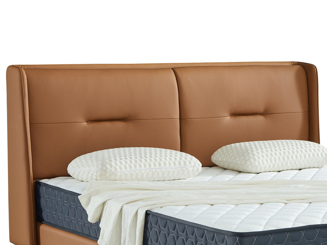 【套餐专享价】每屋优享系列 现代简约 实木内架+高回弹海绵+钢木排骨架+生态真皮+中纤板+仿皮+碳素钢脚 1.8米床+床头柜*2