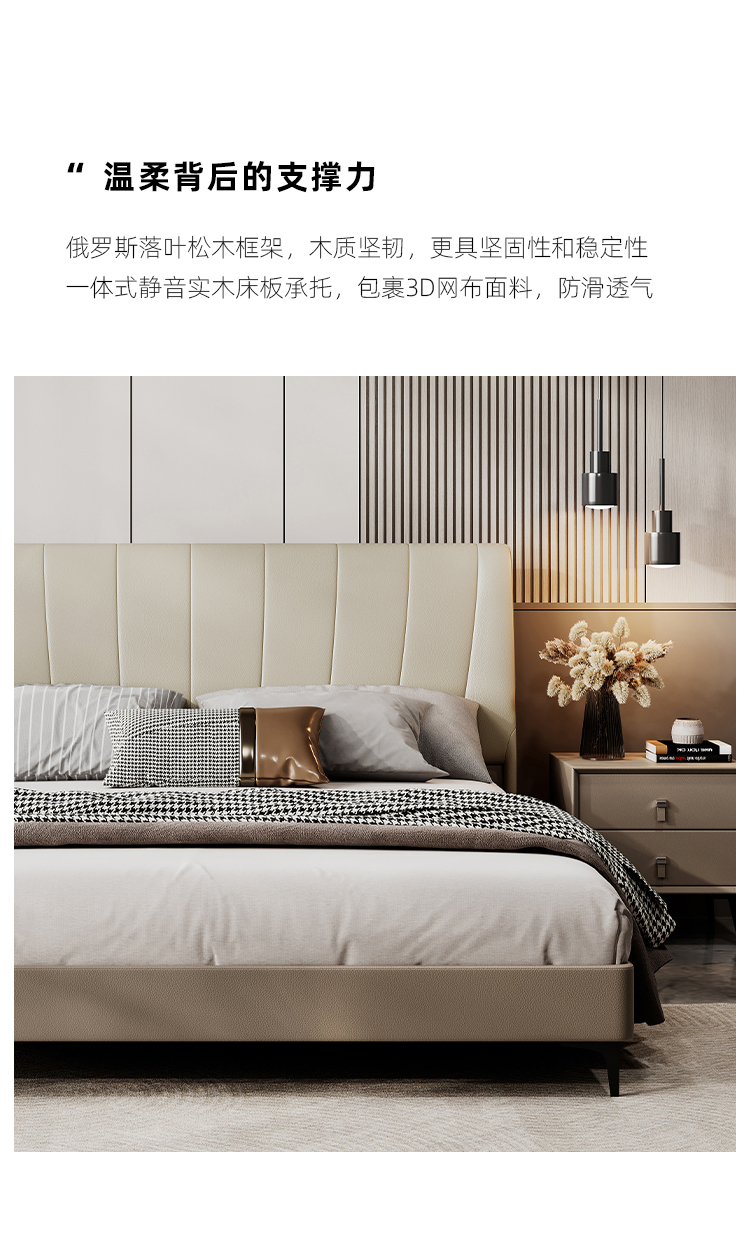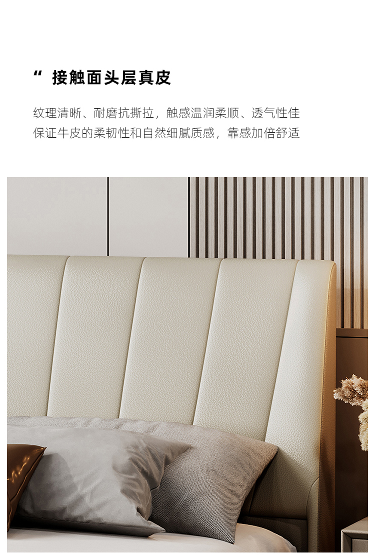 帝幔佧 现代 接触面真皮 俄罗斯进口落叶松 优质高回弹海绵靠包 钢木排骨架 真皮床 1.8米床¥3186