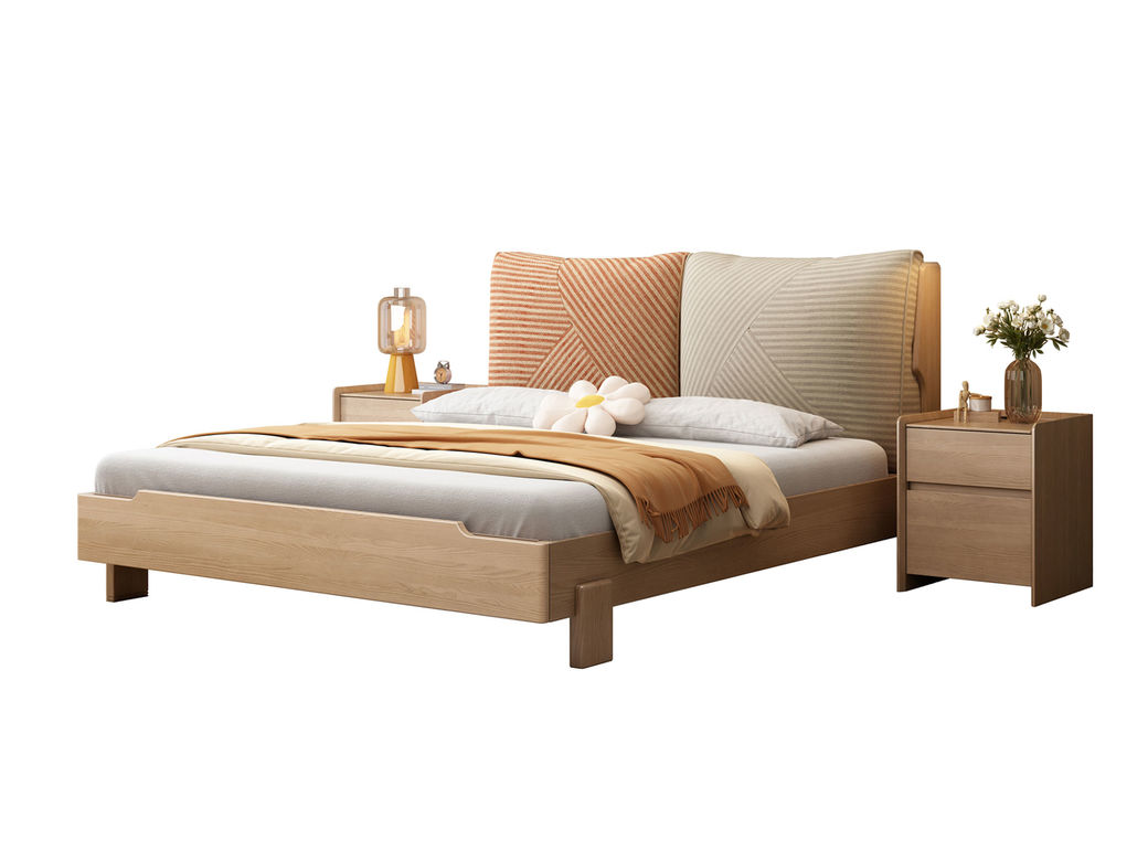优木集 现代简约 白蜡木+橡木+棉麻面料 1.8M床