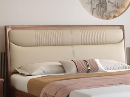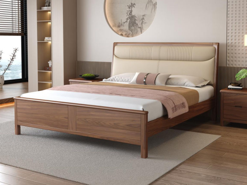 乐芙兰 北欧 进口白蜡木+多层实木板+超纤皮+高回弹海绵+松木床板 胡桃色 1.8米床¥3870