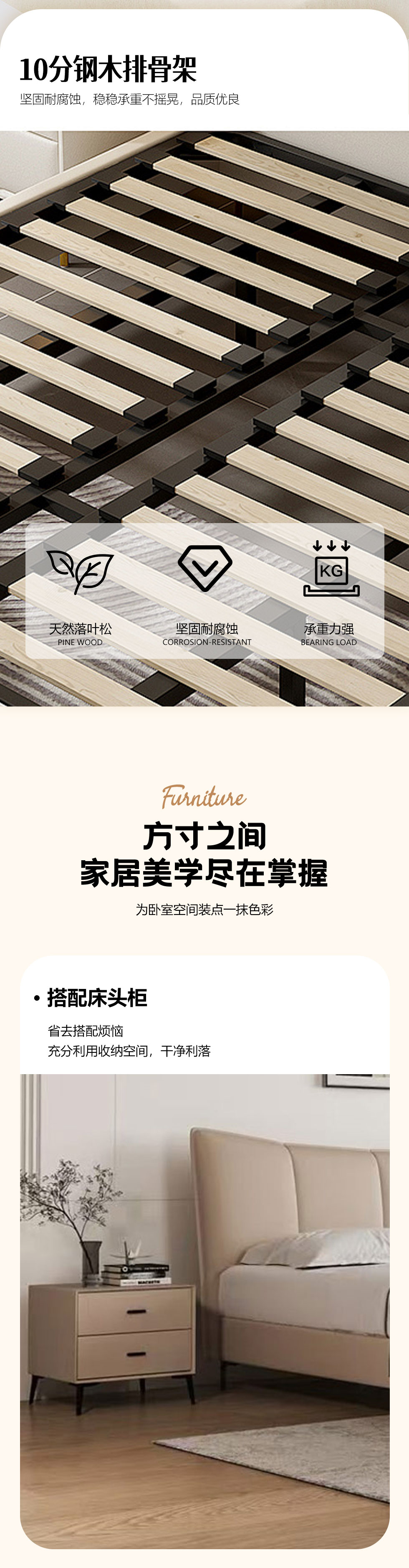 【套餐专享价】每屋优享系列 现代简约 实木内架+高回弹海绵+钢木排骨架+接触面头层真皮 1.8米床+床头柜*2【套餐专享价】每屋优享系列 现代简约 进口落叶松+多层实木板+10分拆装排骨架+接触面生态皮+高密度海绵靠包+碳素钢脚 1.8米床+2个床头柜
