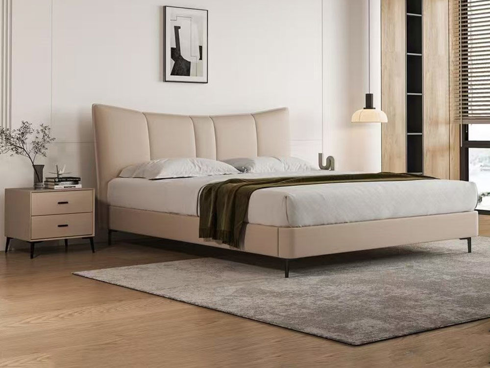 【套餐专享价】每屋优享系列 现代简约 接触面头层牛皮+仿皮+实木框架+钢木排骨架+胶脚 床头柜平面拉手/5分胶脚1.8米床+2床头柜¥3168