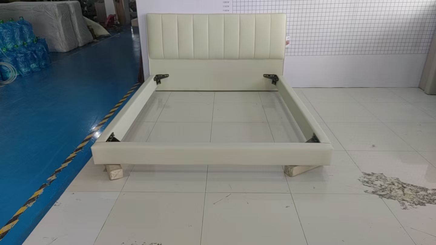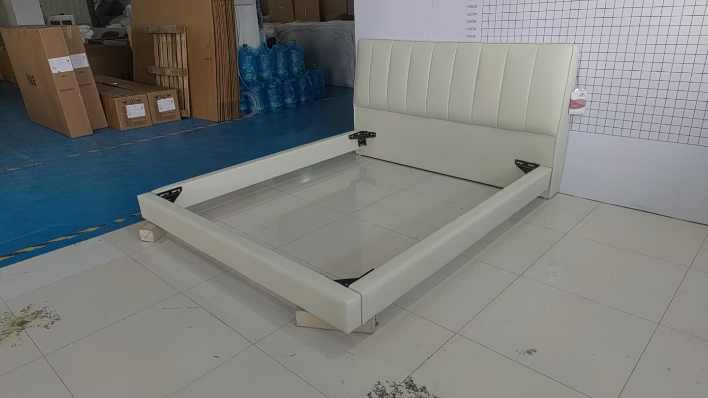 【套餐专享价】每屋优享系列 现代简约 接触面头层牛皮+仿皮+实木框架+钢木排骨架+胶脚 床头柜平面拉手/5分胶脚1.8米床+2床头柜¥3168