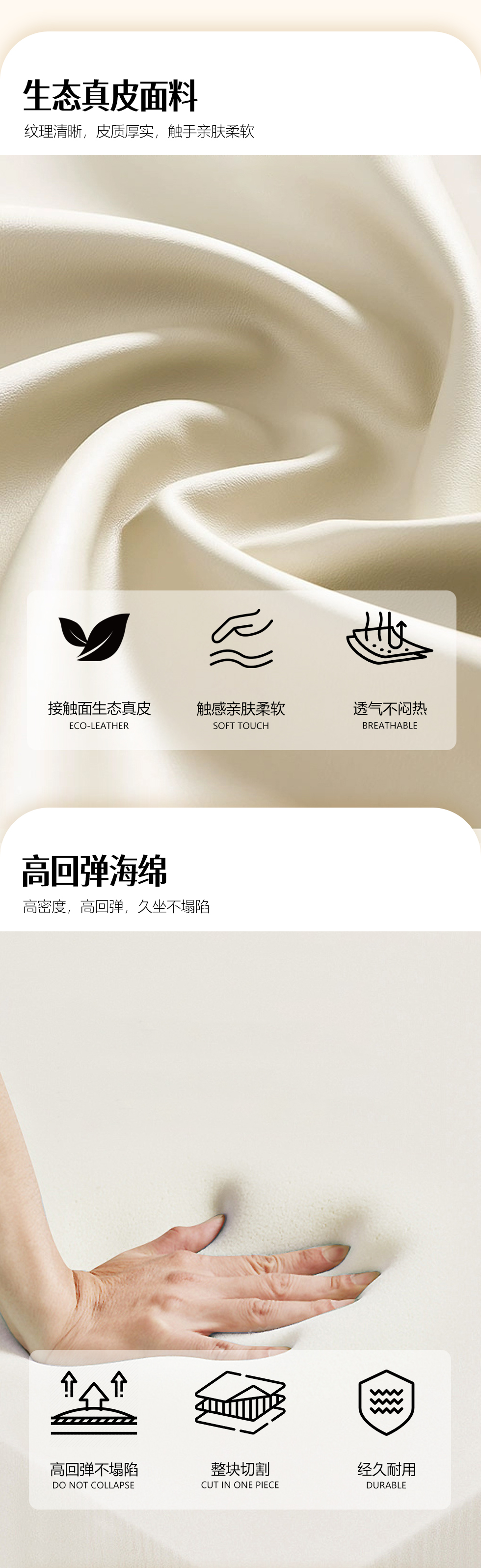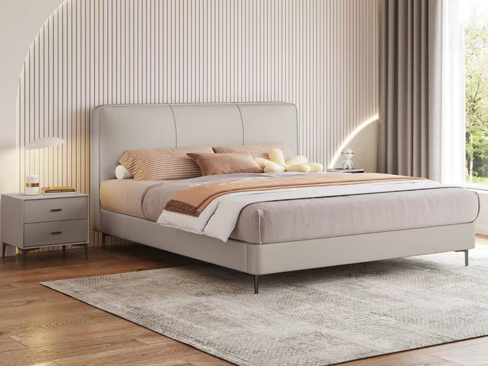 【套餐专享价】每屋优享系列 现代简约 接触面头层牛皮+仿皮+实木框架+钢木排骨架+胶脚 床头柜平面拉手/5分胶脚1.8米床+2床头柜¥3168